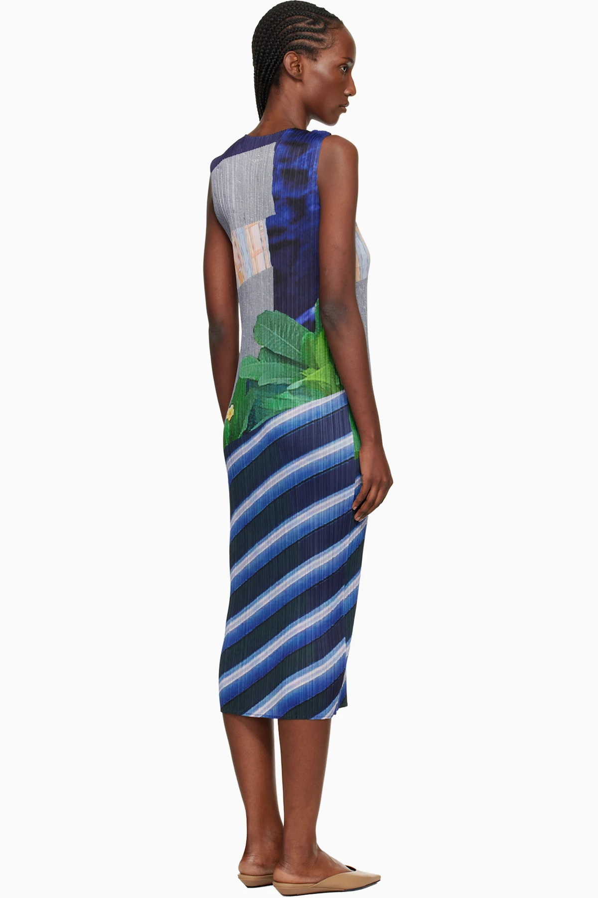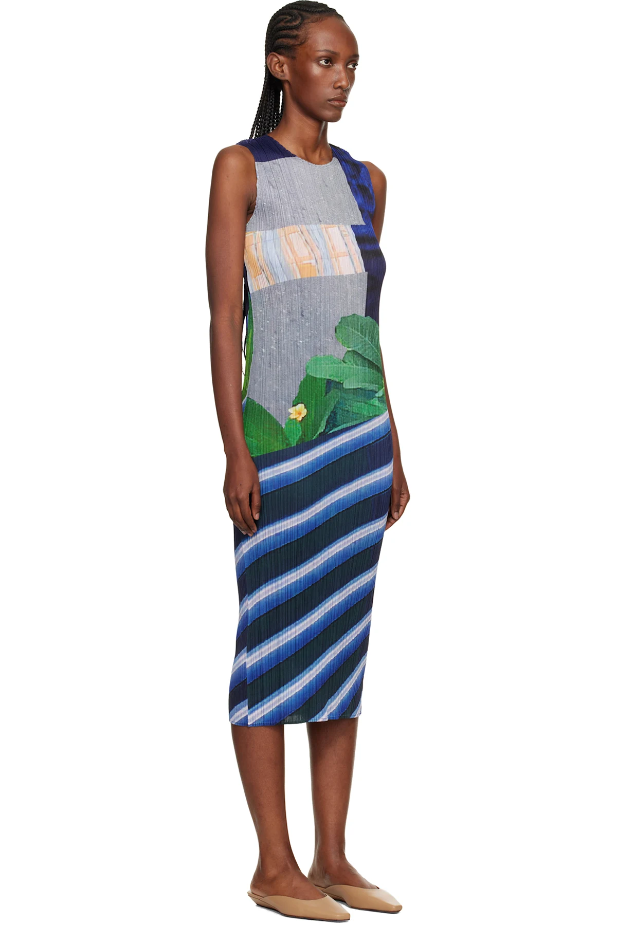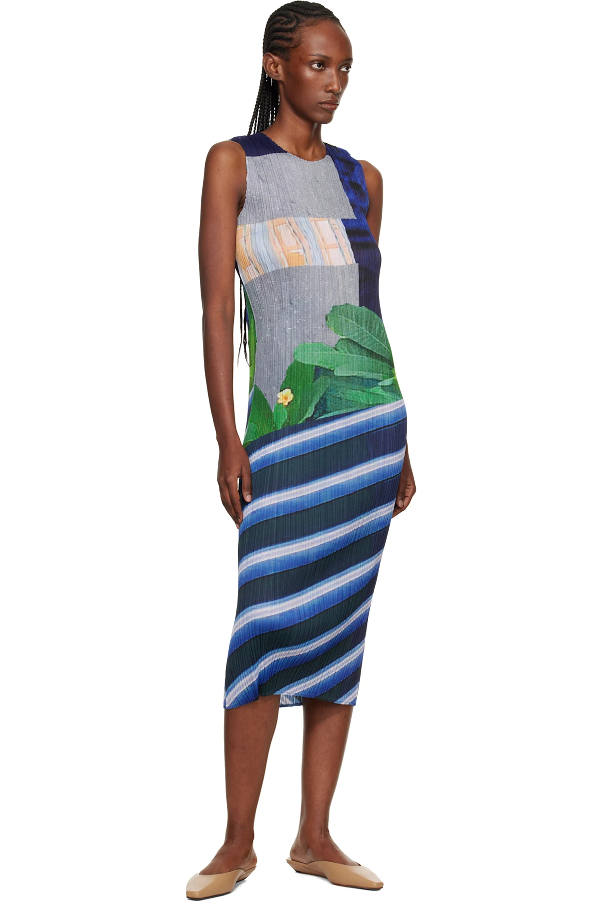 Garment-pleated tricot midi dress.