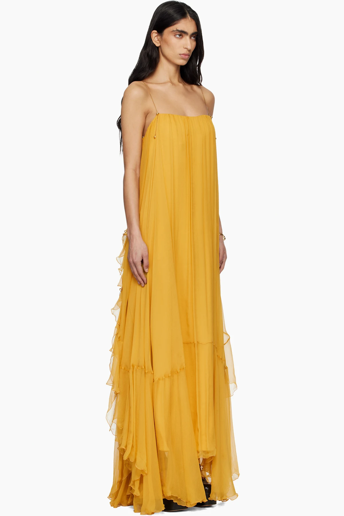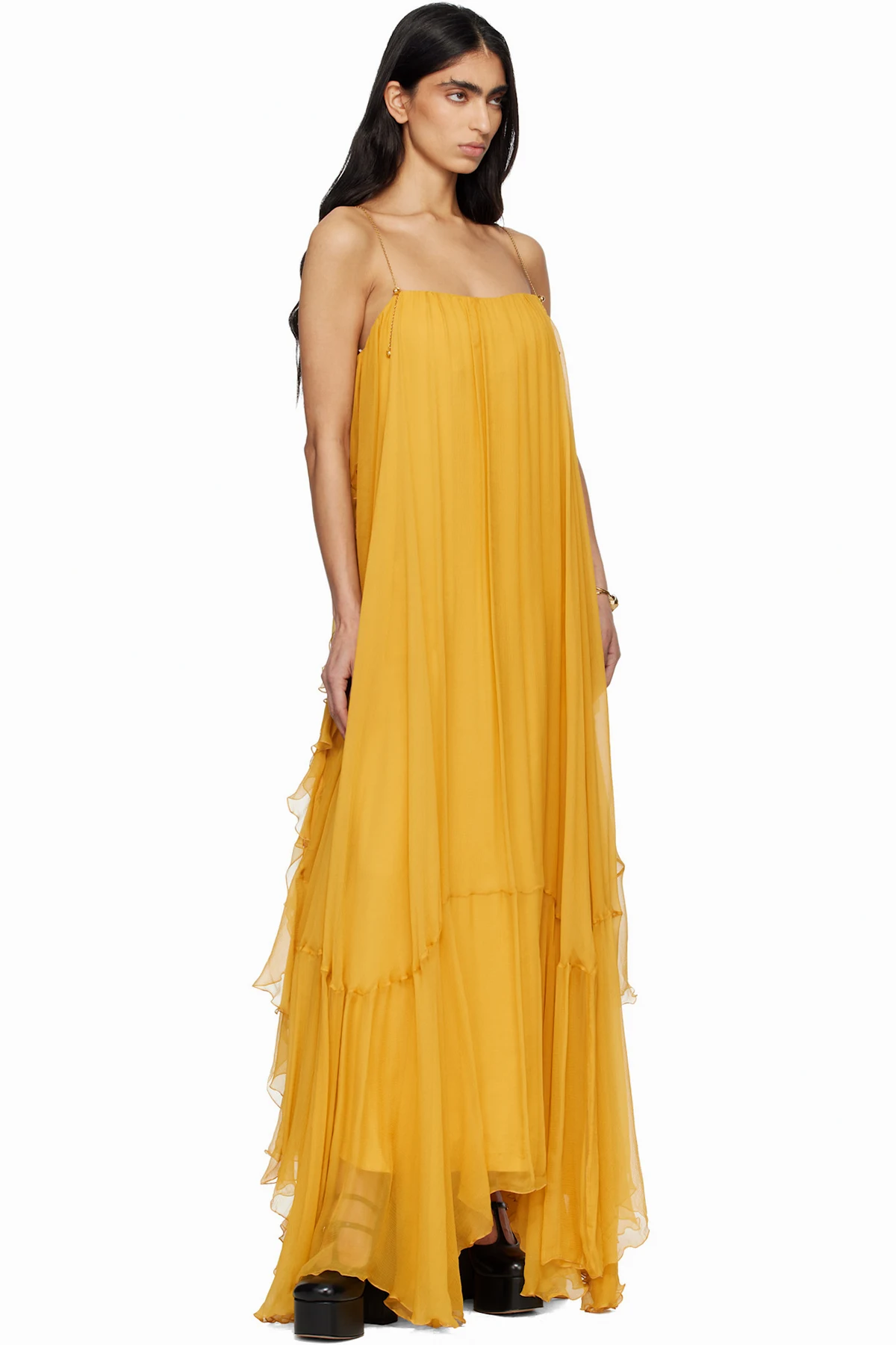 Layered silk mousseline maxi dress.