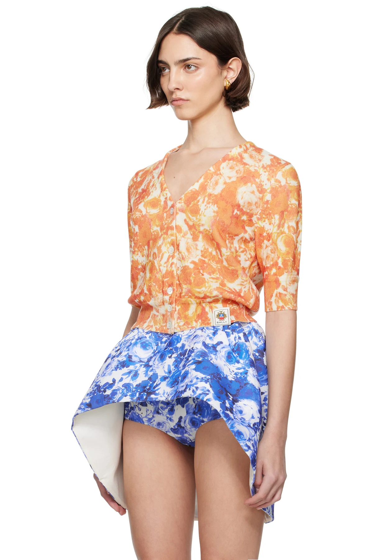 Orange Rosengarten Print Cardigan