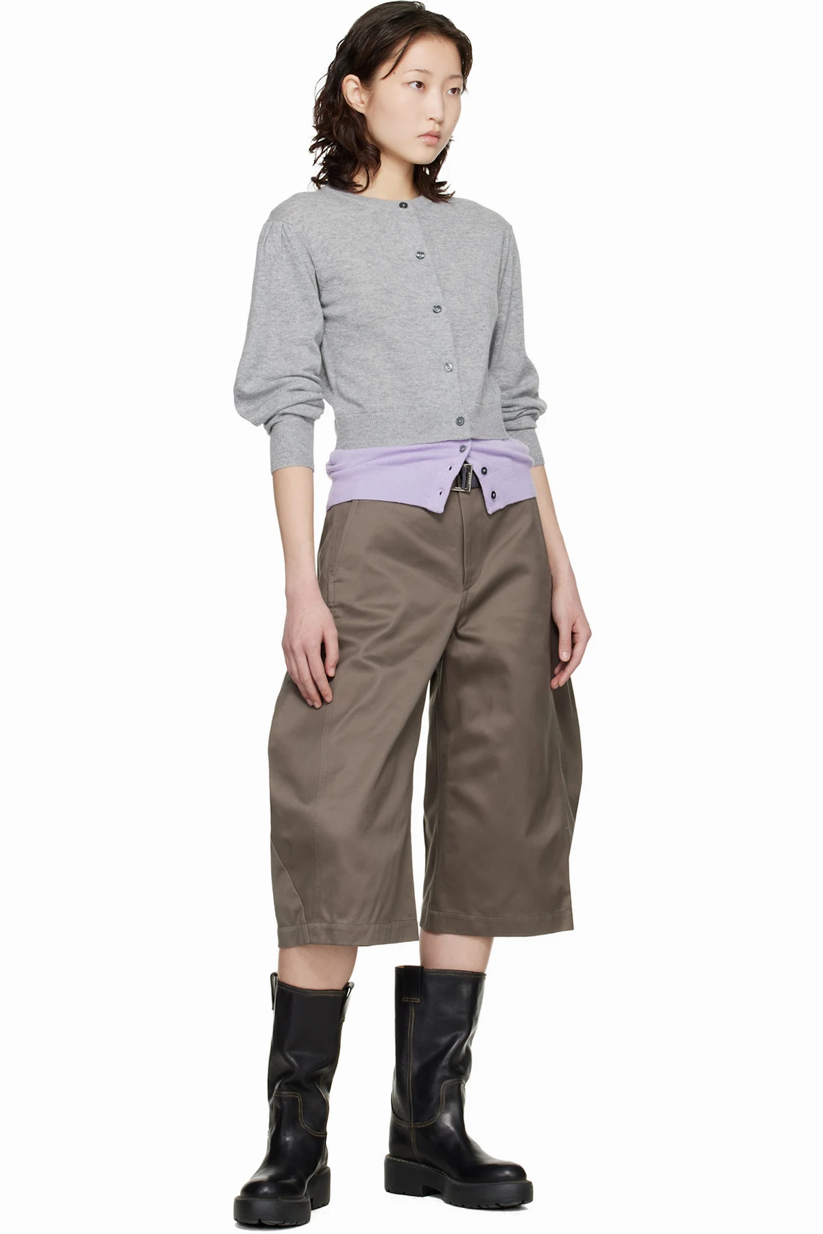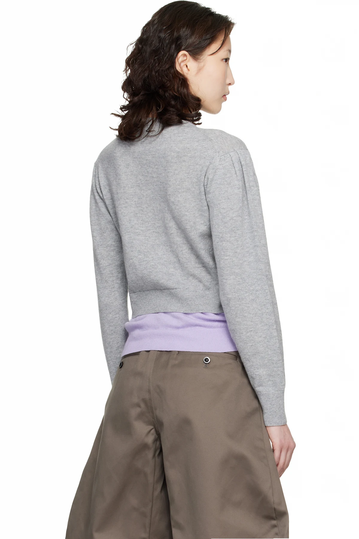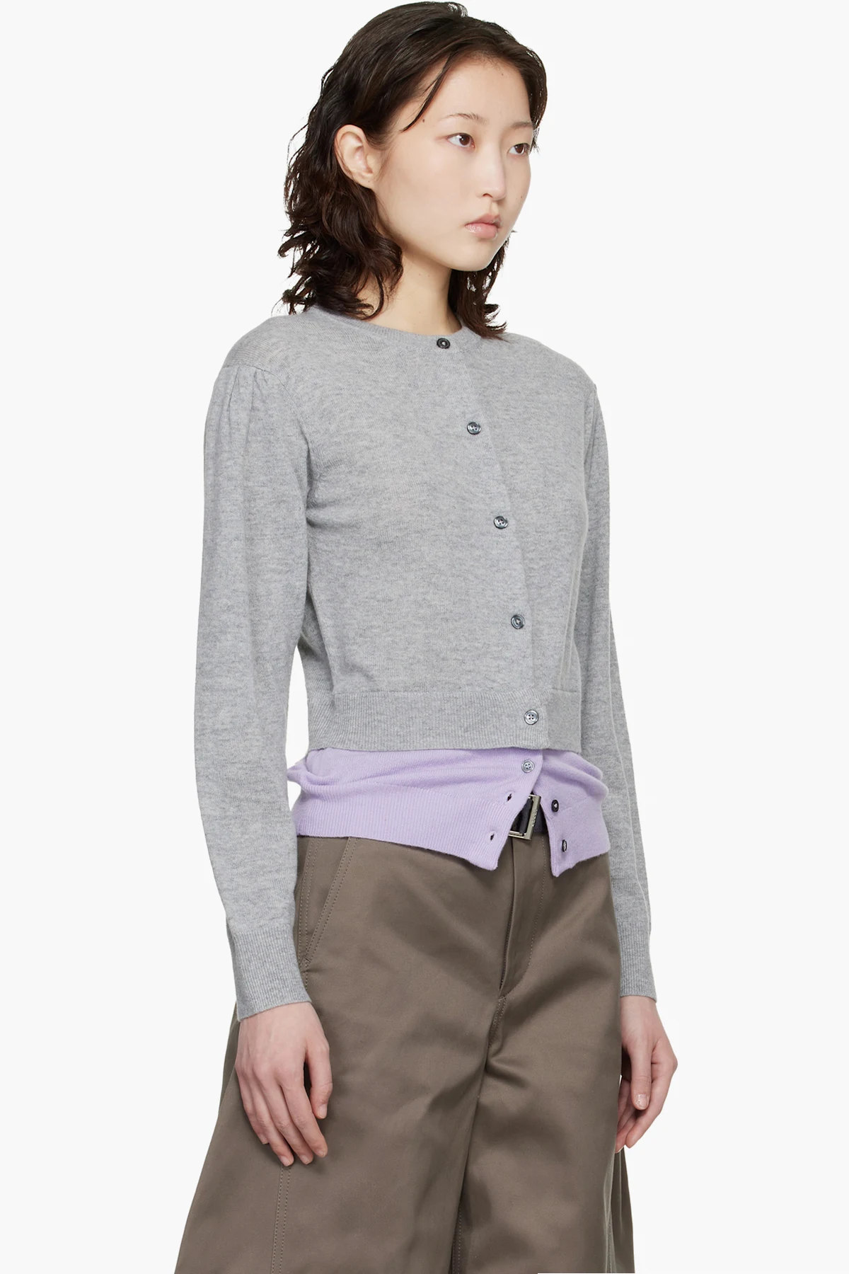 Gray & Purple Crew Neck Double Cardigan