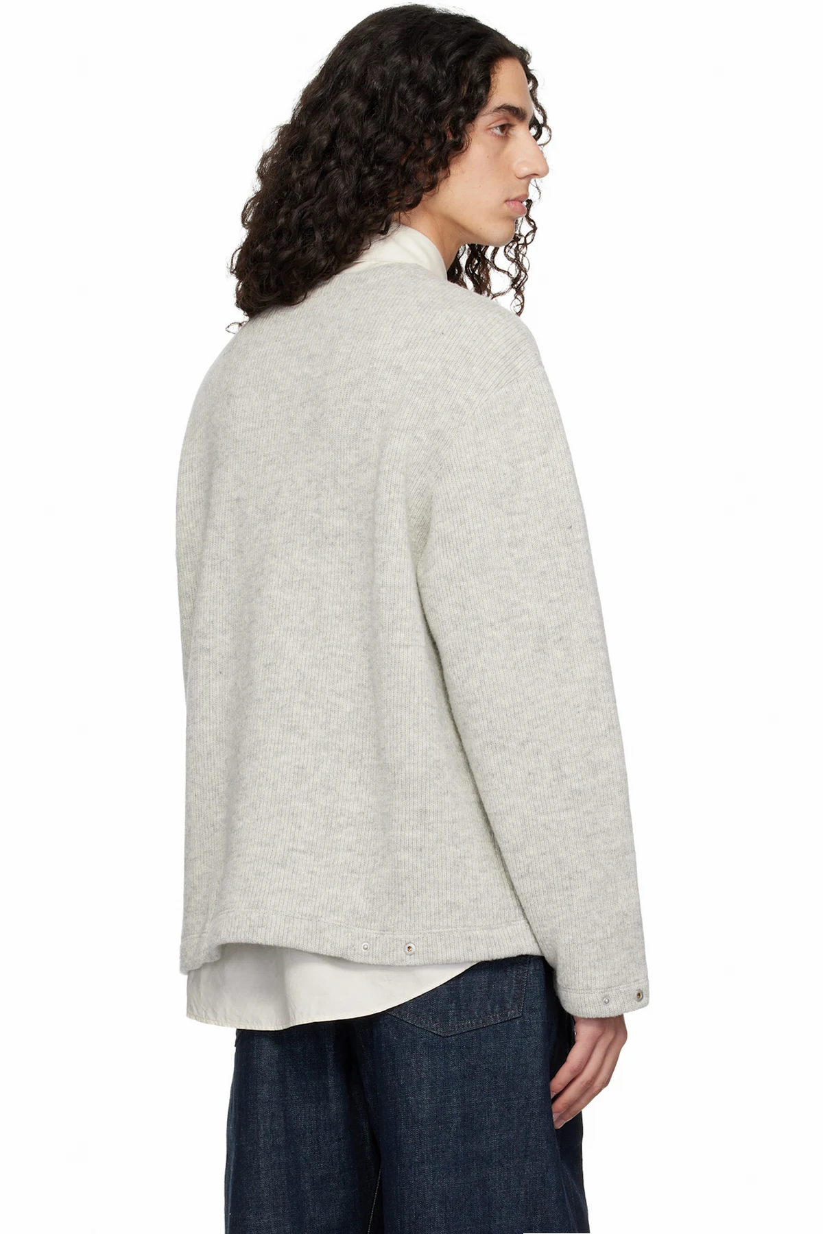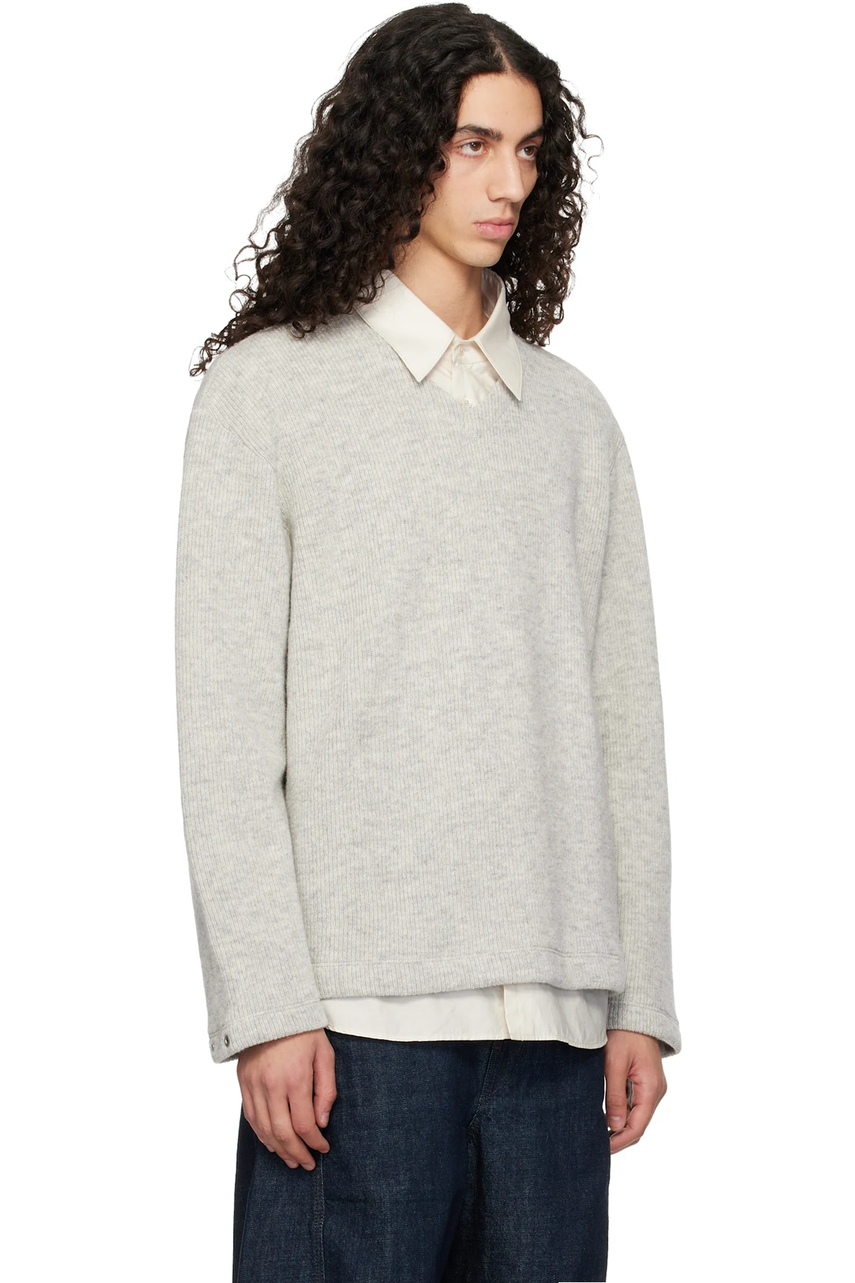 Gray V-Neck Snap Sweater