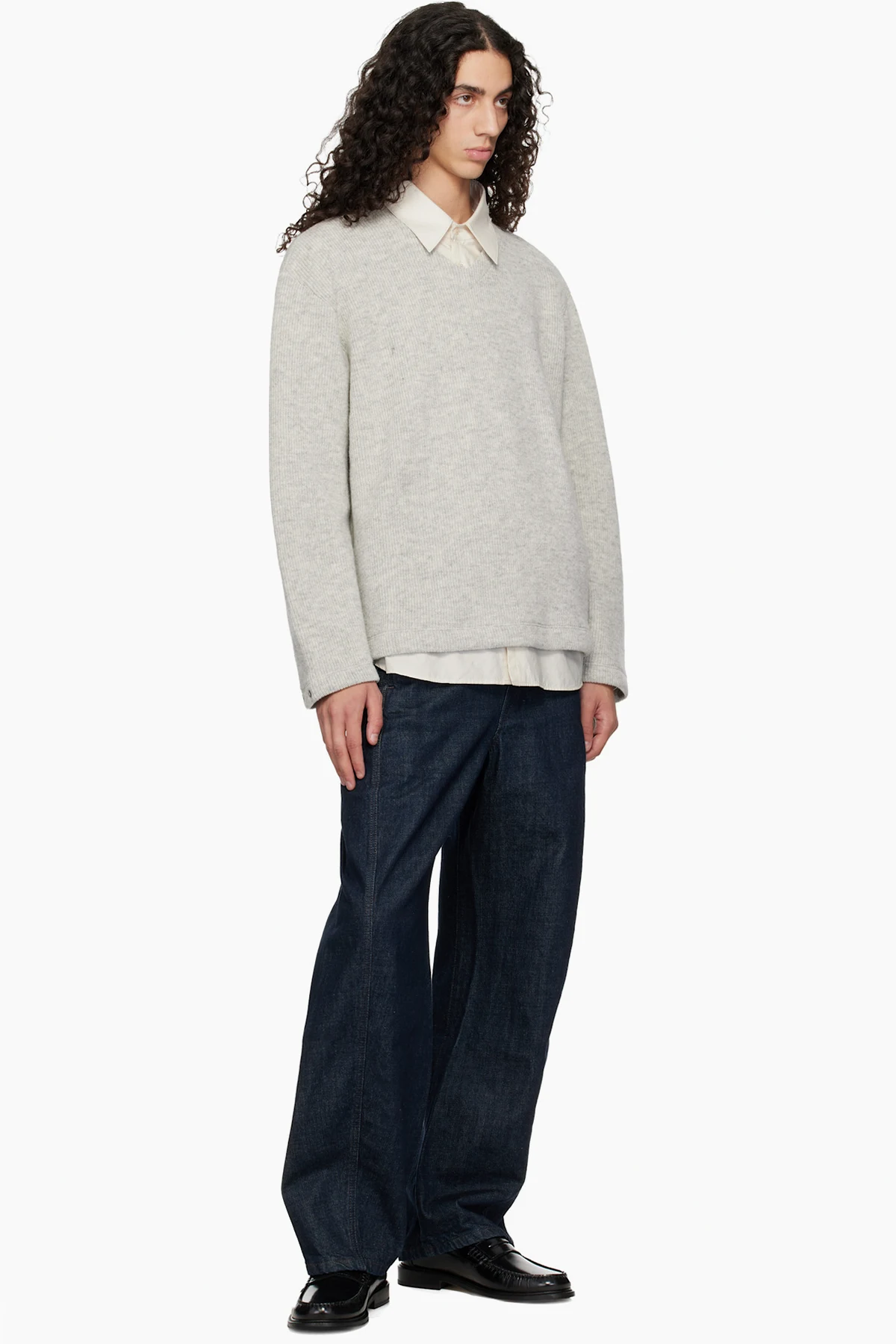 Rib-knit cotton- and wool-blend sweater.