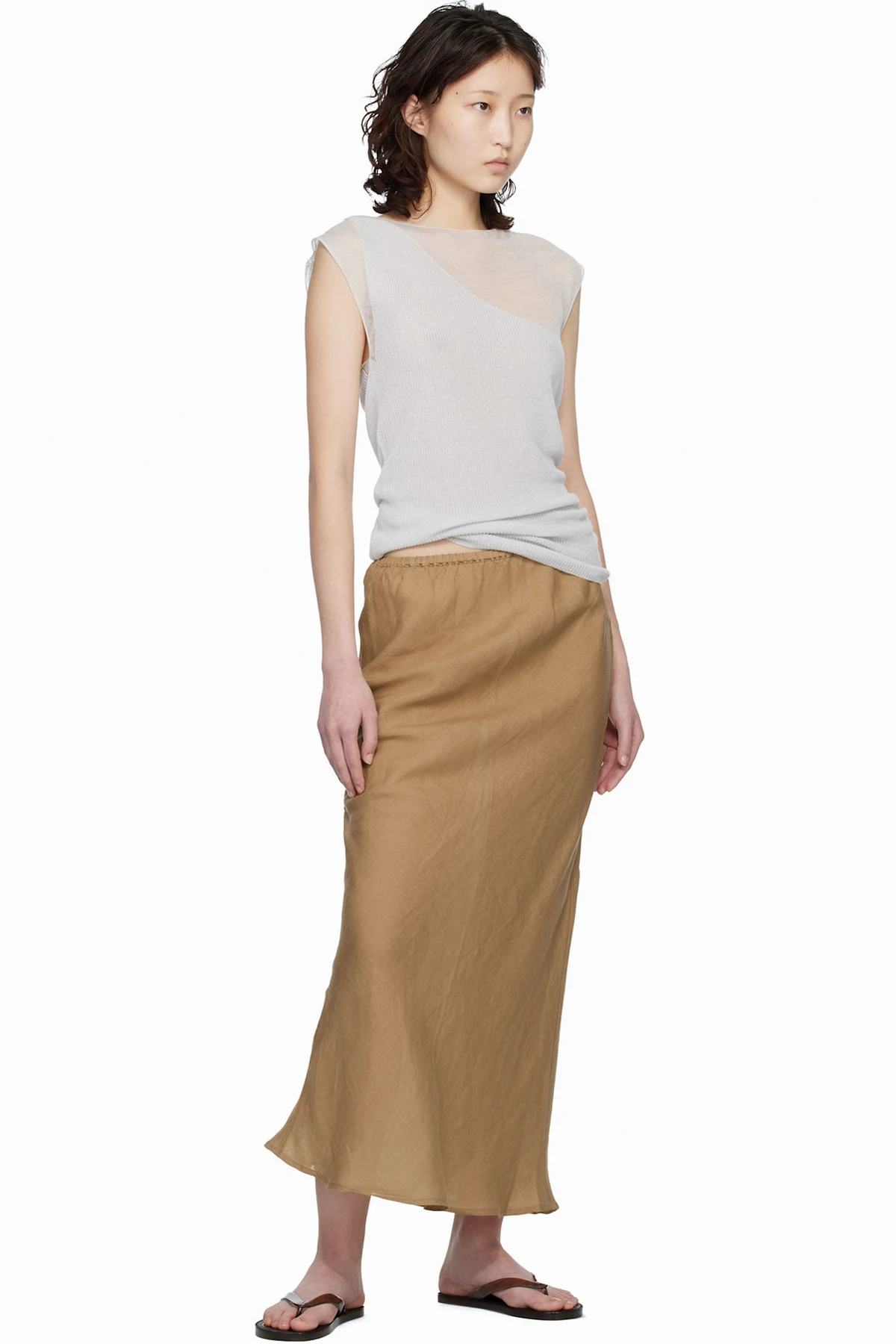 Semi-sheer linen hopsack maxi skirt.