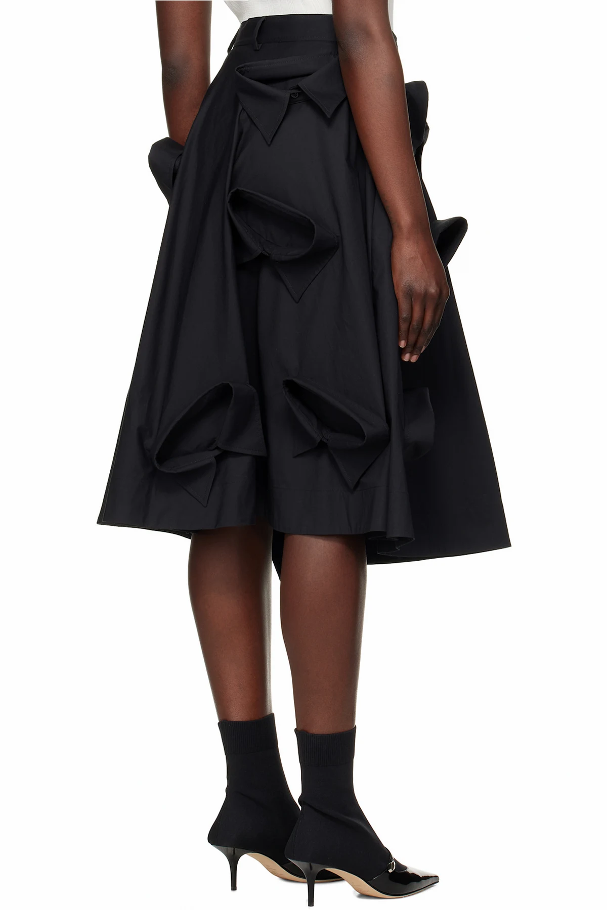 Black Poplin Multi Collars Midi Skirt