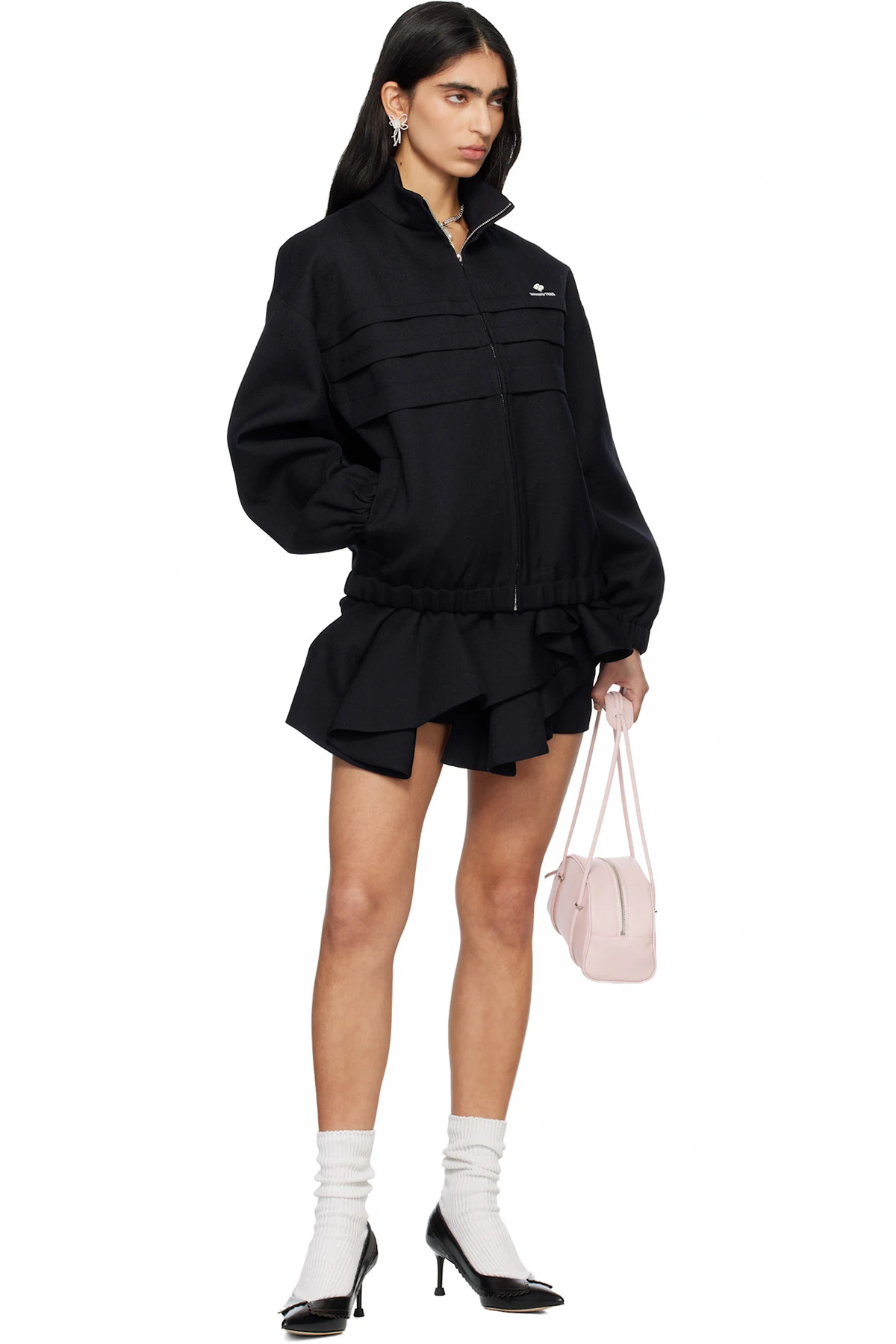 Navy Asymmetrical Bow & Ruffle Miniskirt