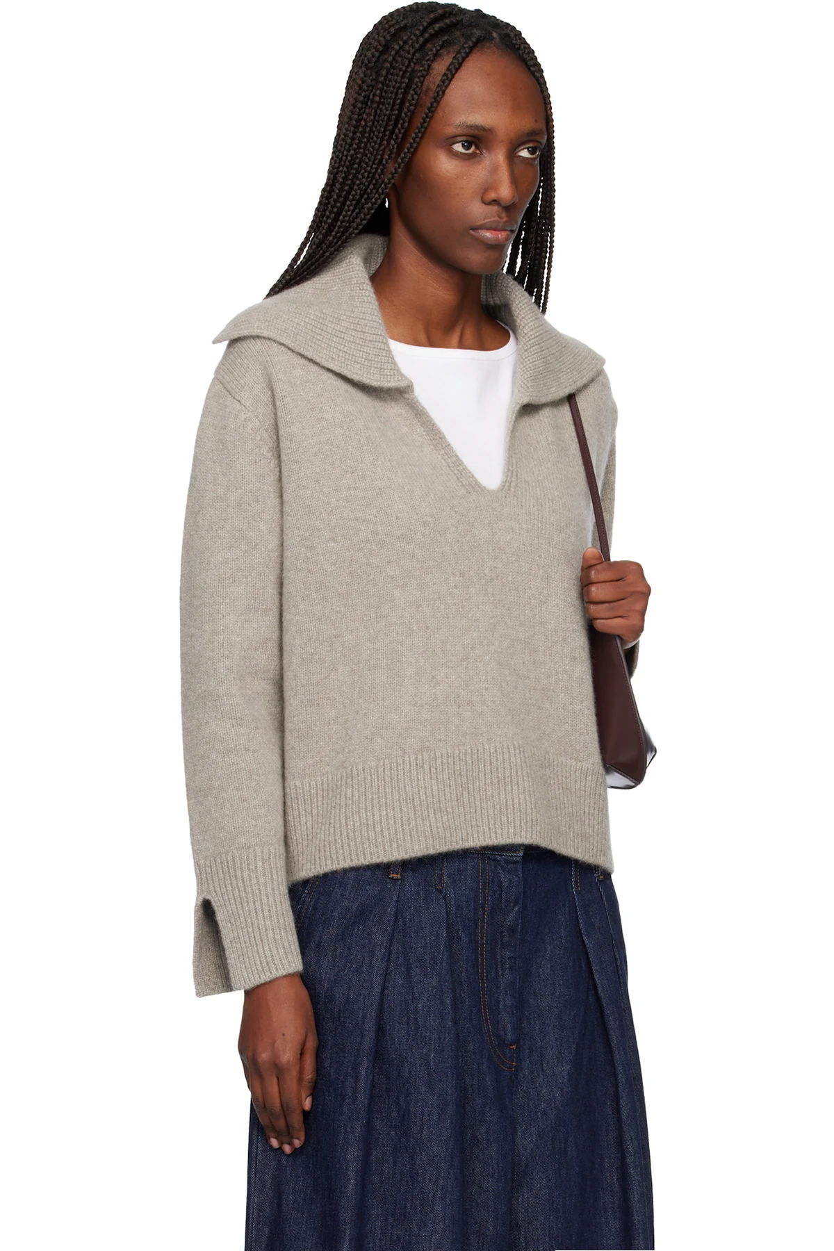 Knit GOTS-certified cashmere sweater.