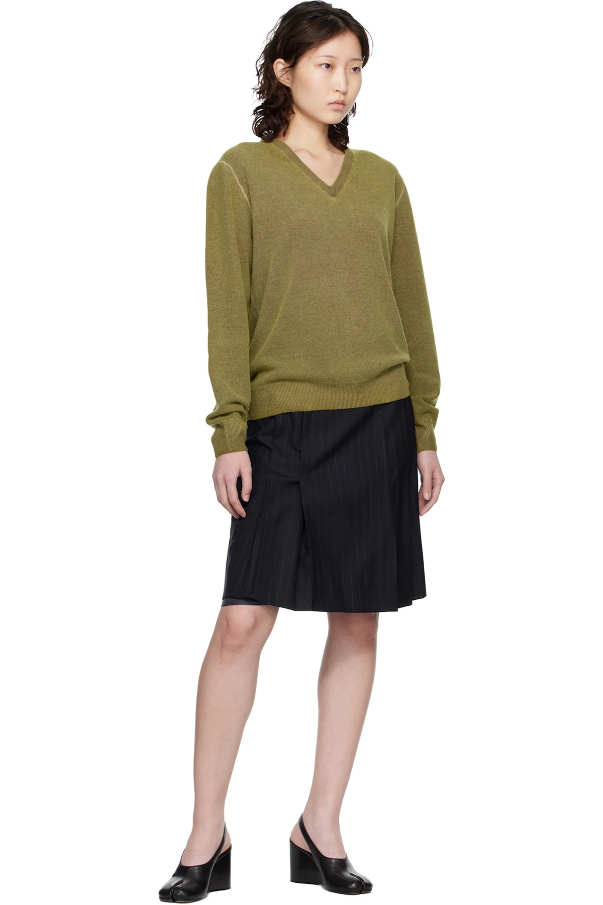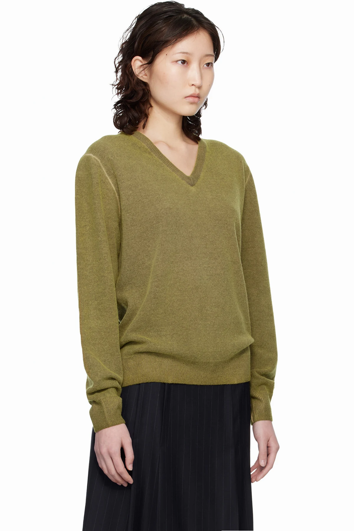 Green Virgin Wool V-Neck Sweater