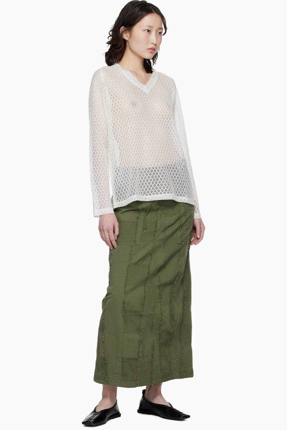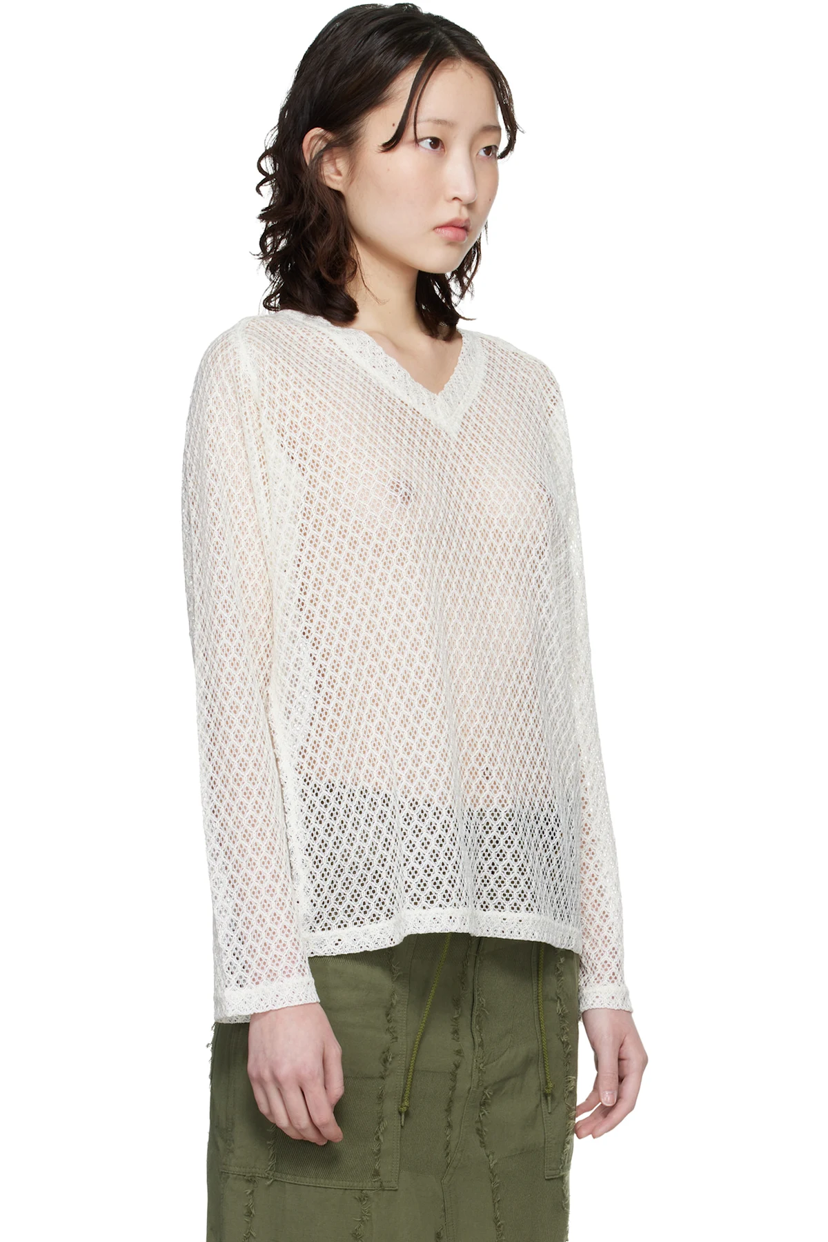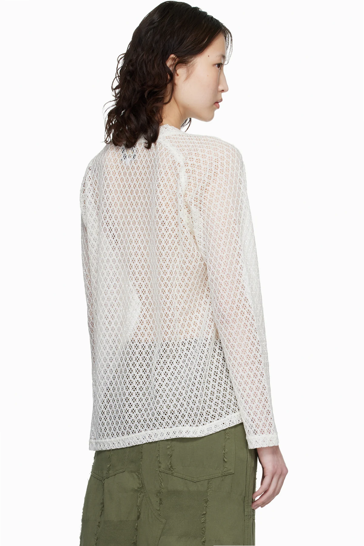 Semi-sheer open-knit sweater.