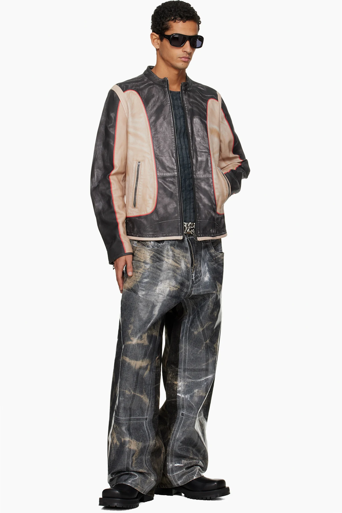 Black & Beige L-Evert Leather Jacket