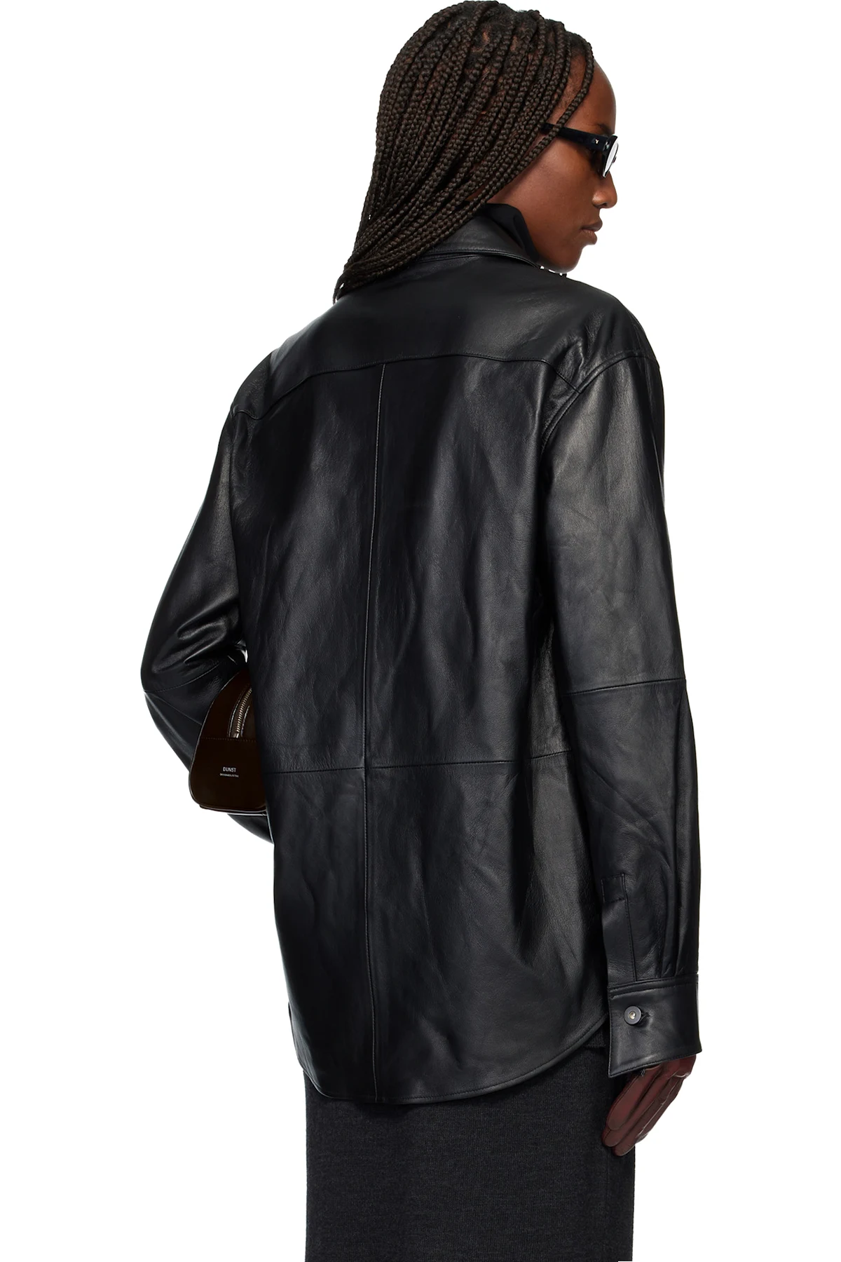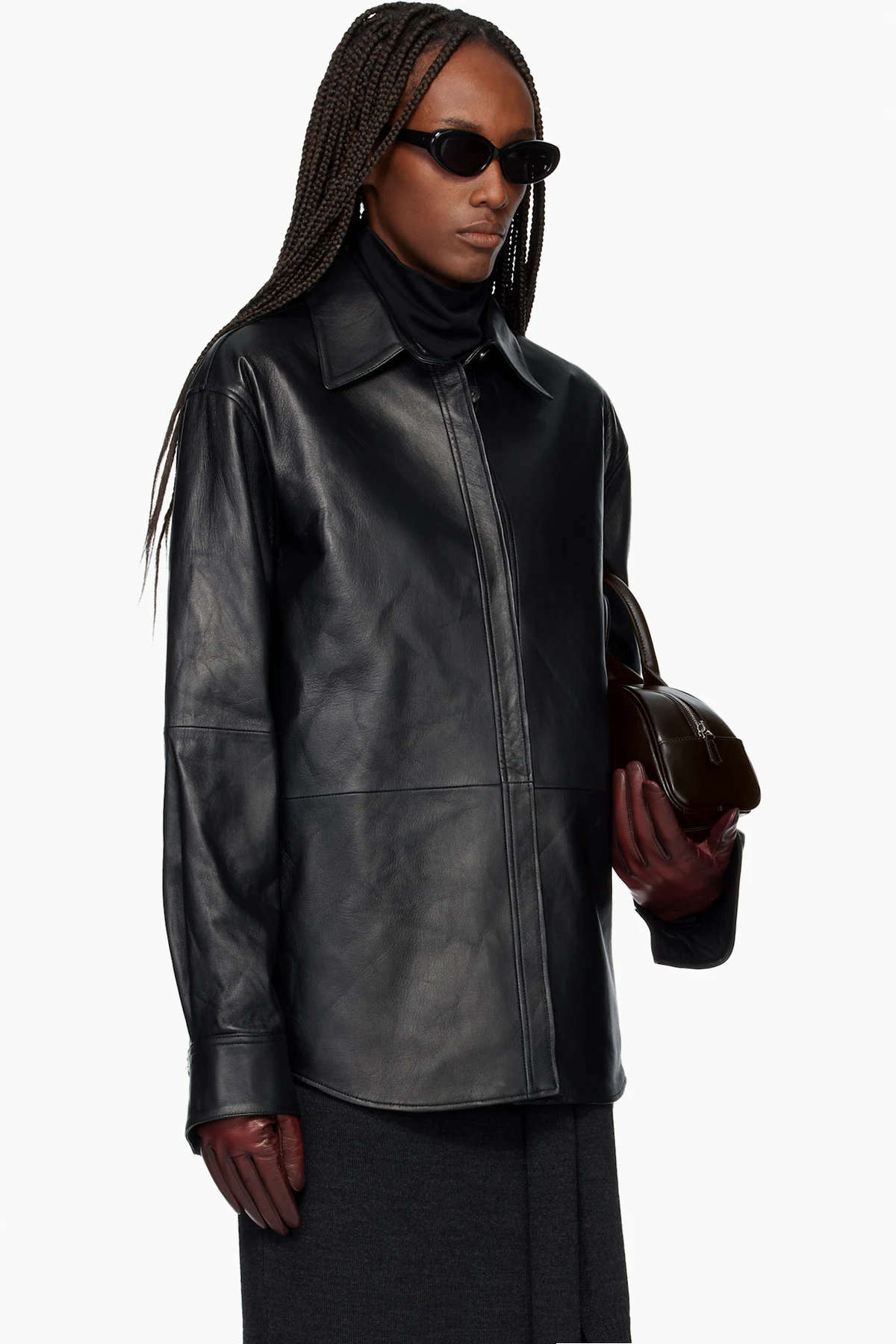 Body: 100% lambskin. Lining: 50% polyester, 50% viscose.
