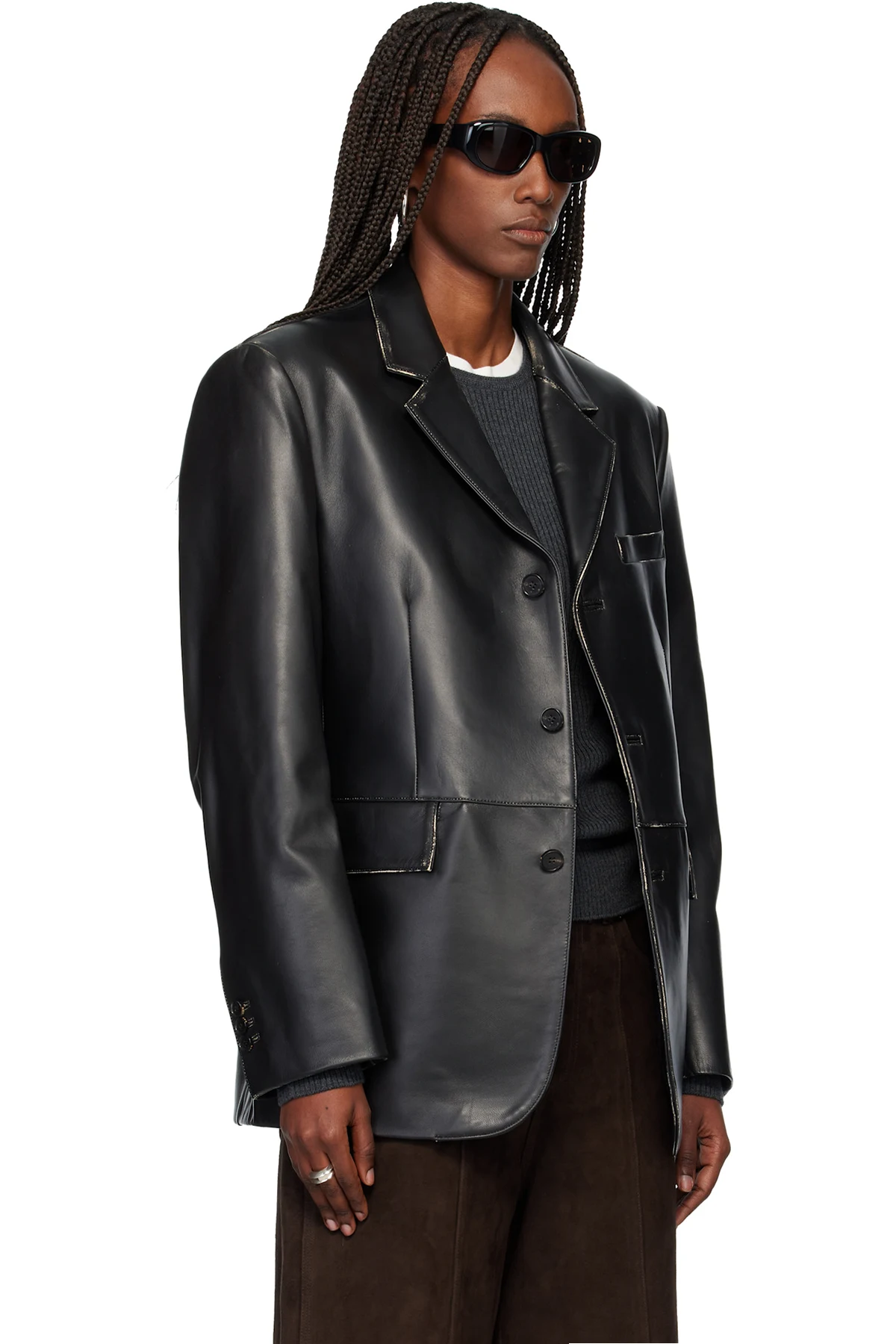 Black Nappa Leather Distressed Tailored Jacket