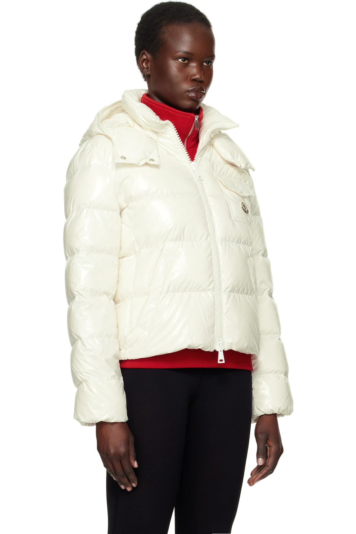 DIST-certified down-filled and quilted coated nylon satin jacket.