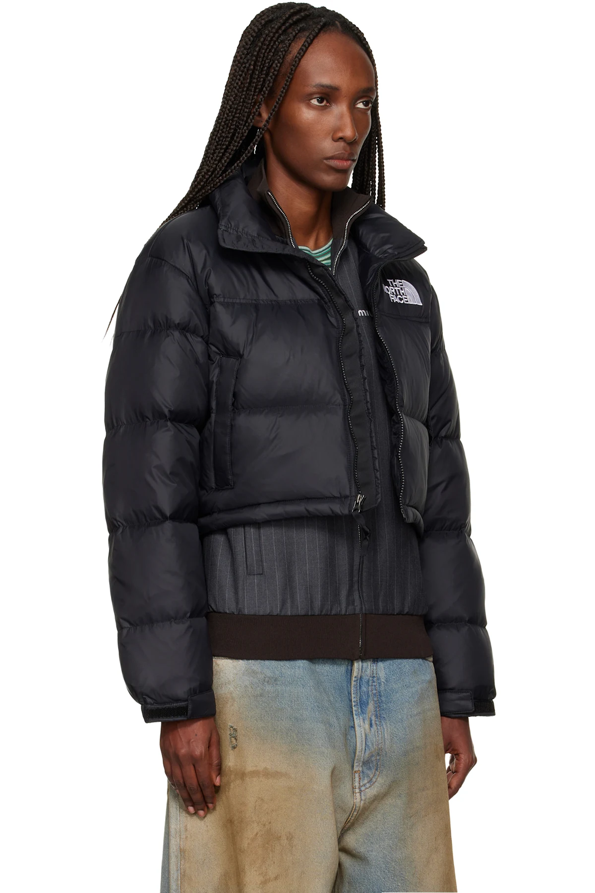 · Bungee-style drawstring at cropped hem