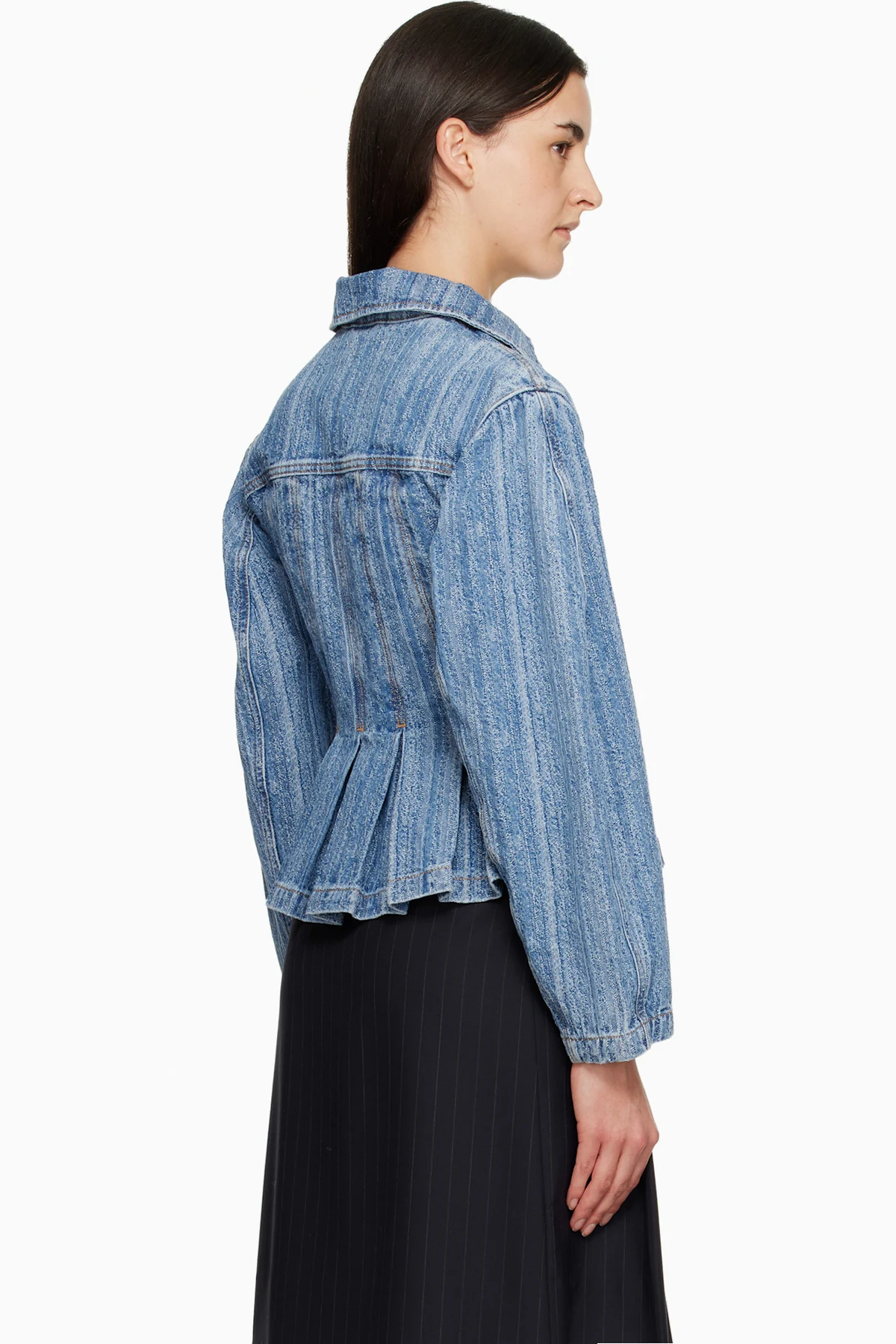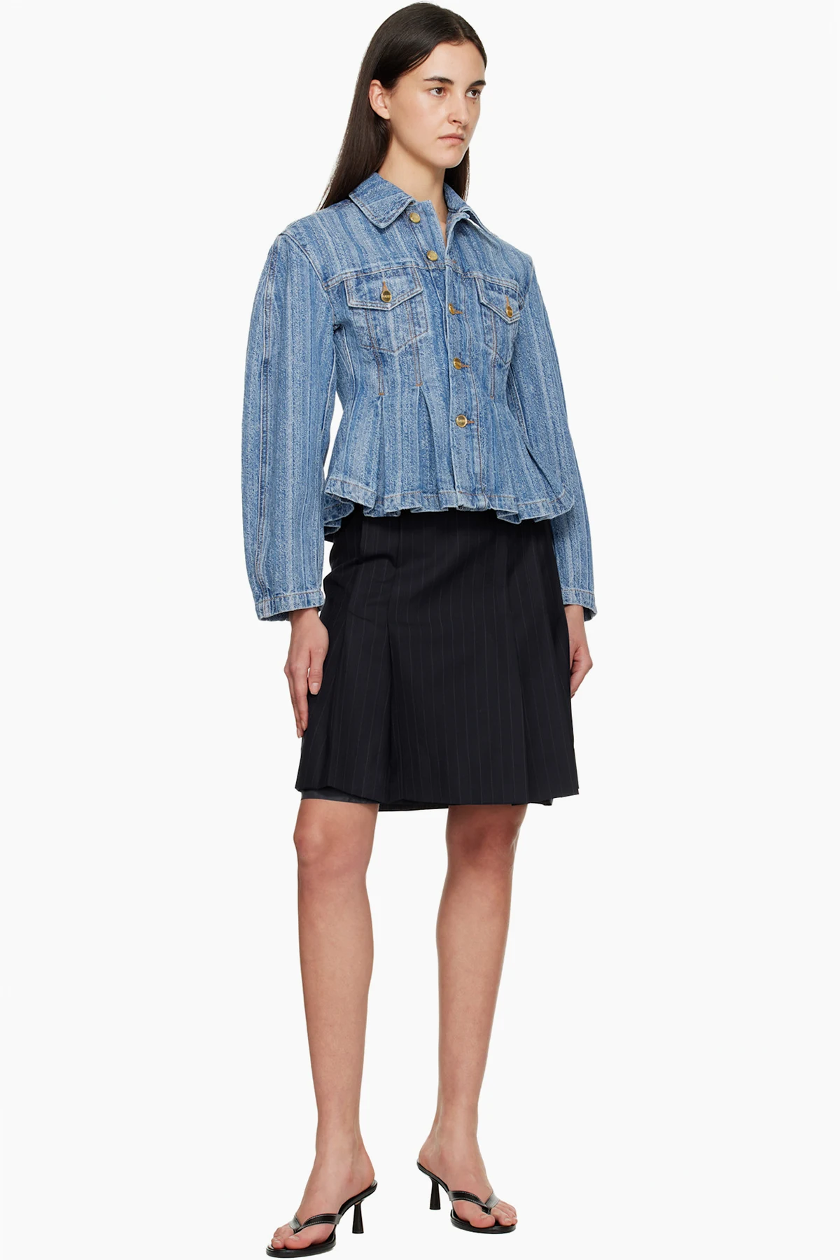 · Pleats at peplum hem