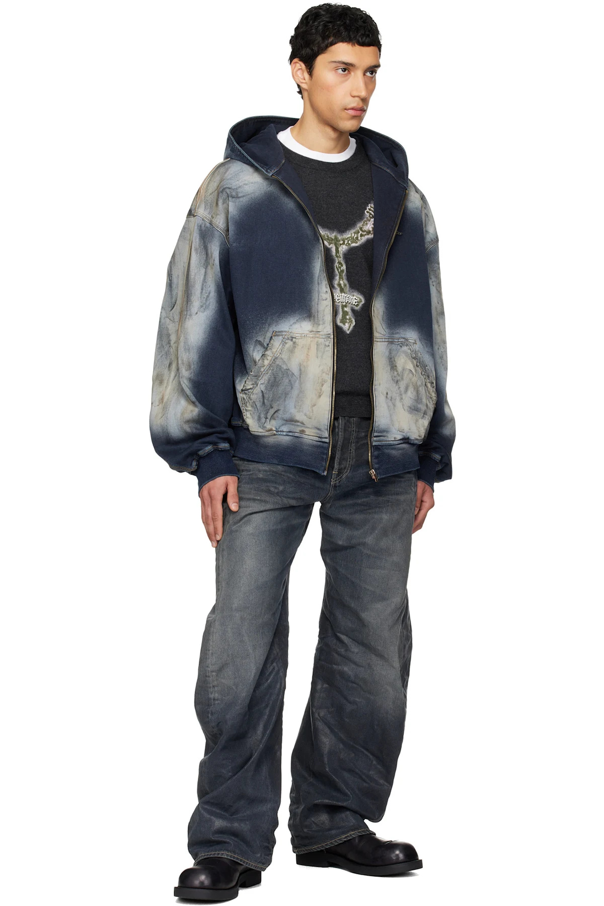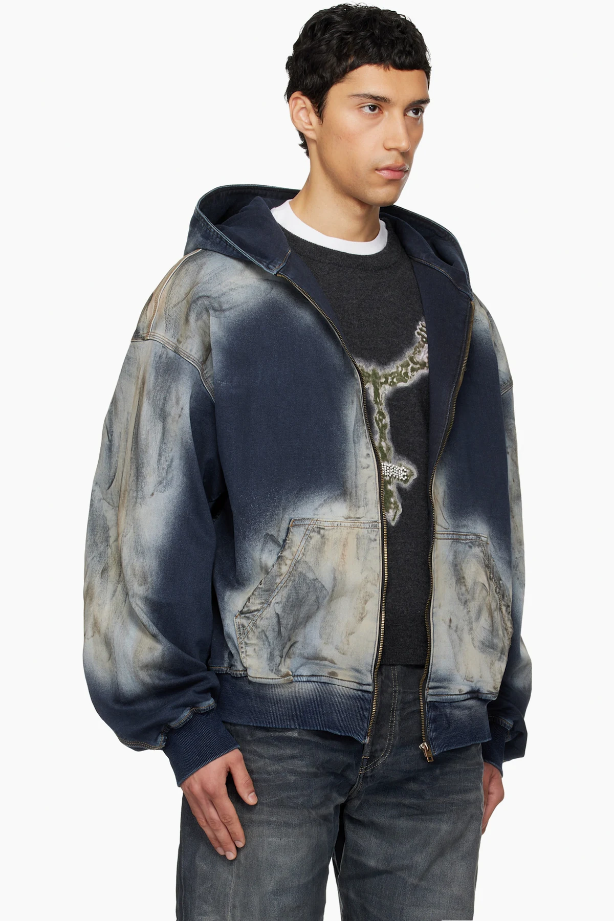 Blue Zip-Up Dirty Denim Jacket