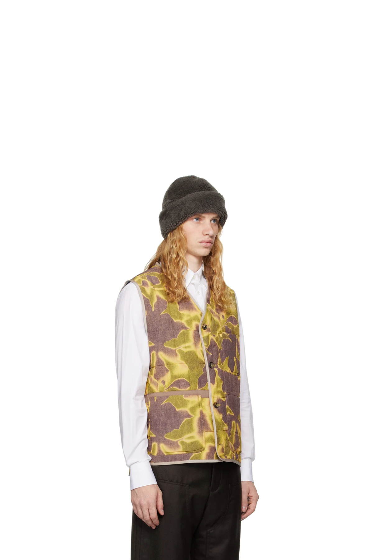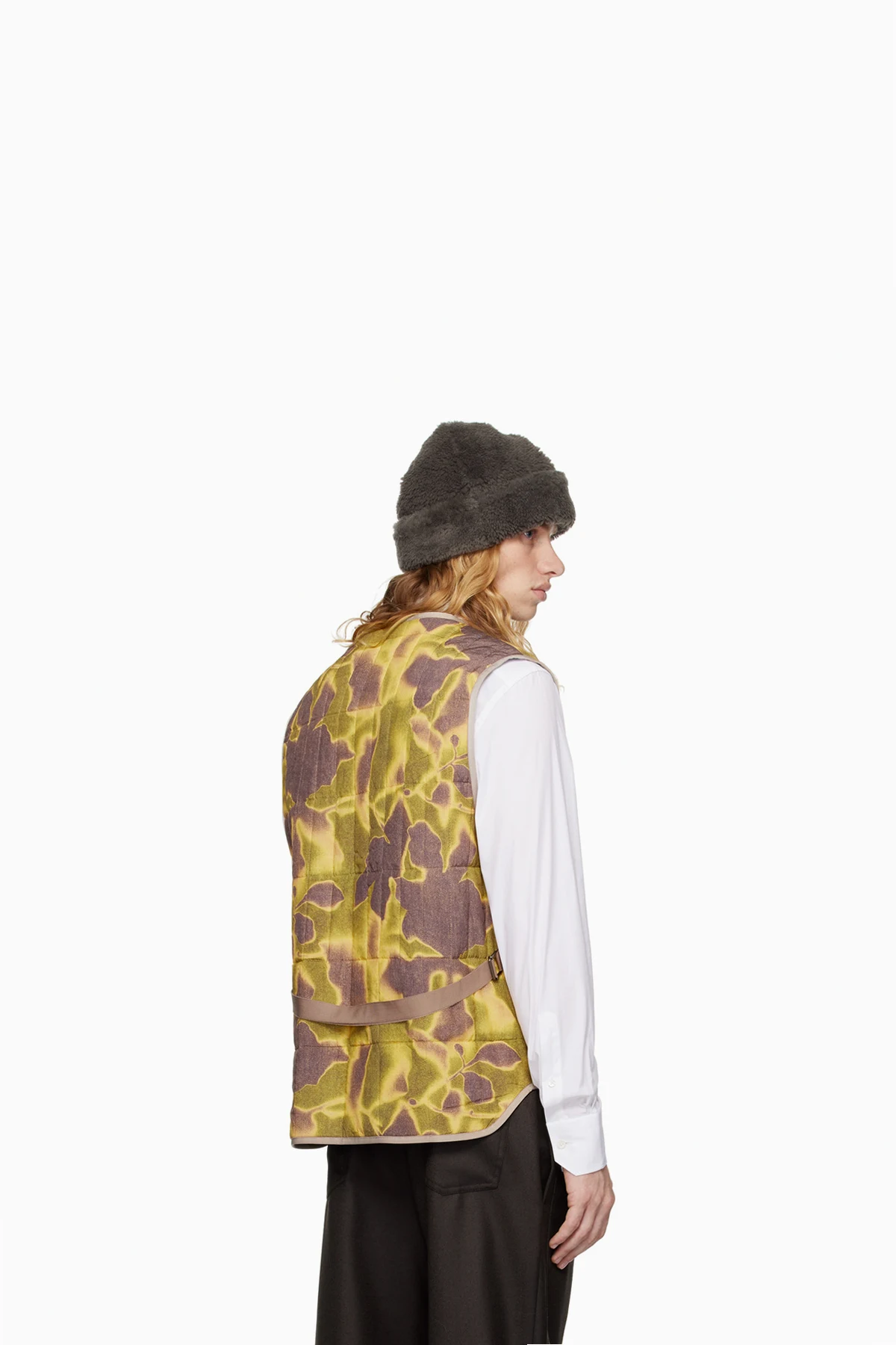 Quilted GOTS-certified viscose twill vest. Graphic pattern throughout.