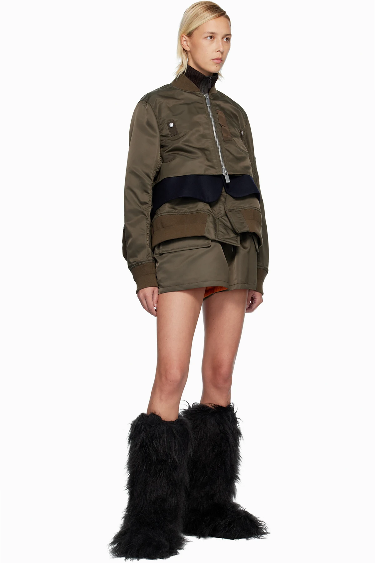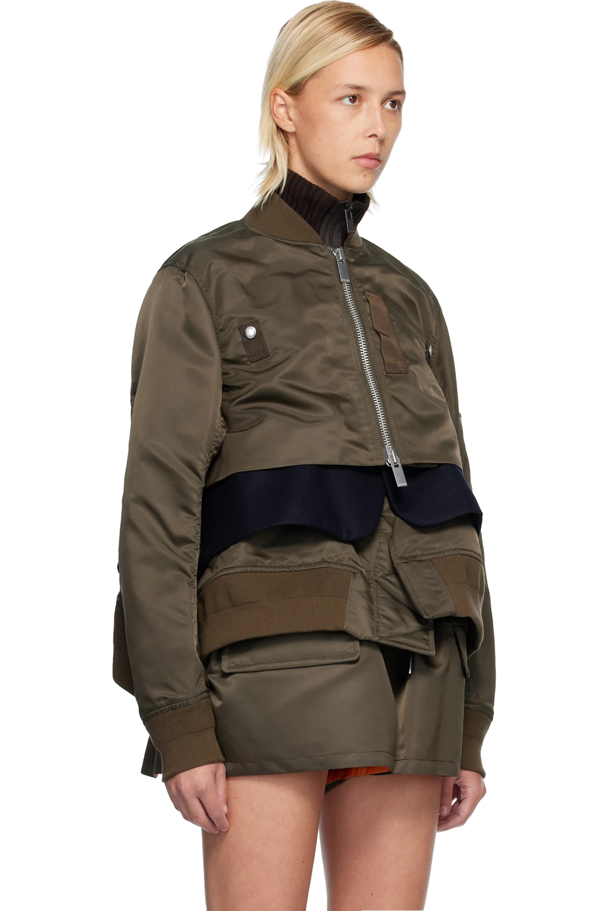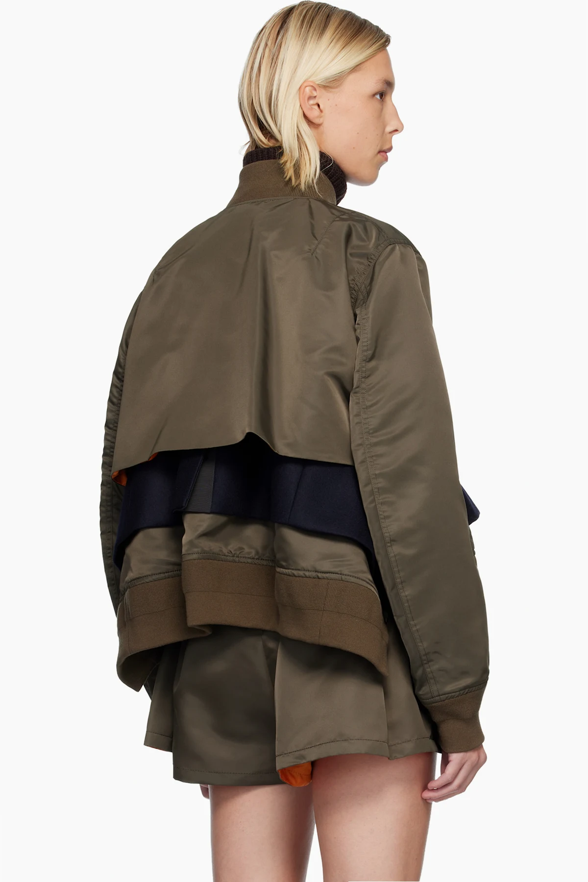 Khaki Nylon Twill & Wool Melton Blouson Jacket