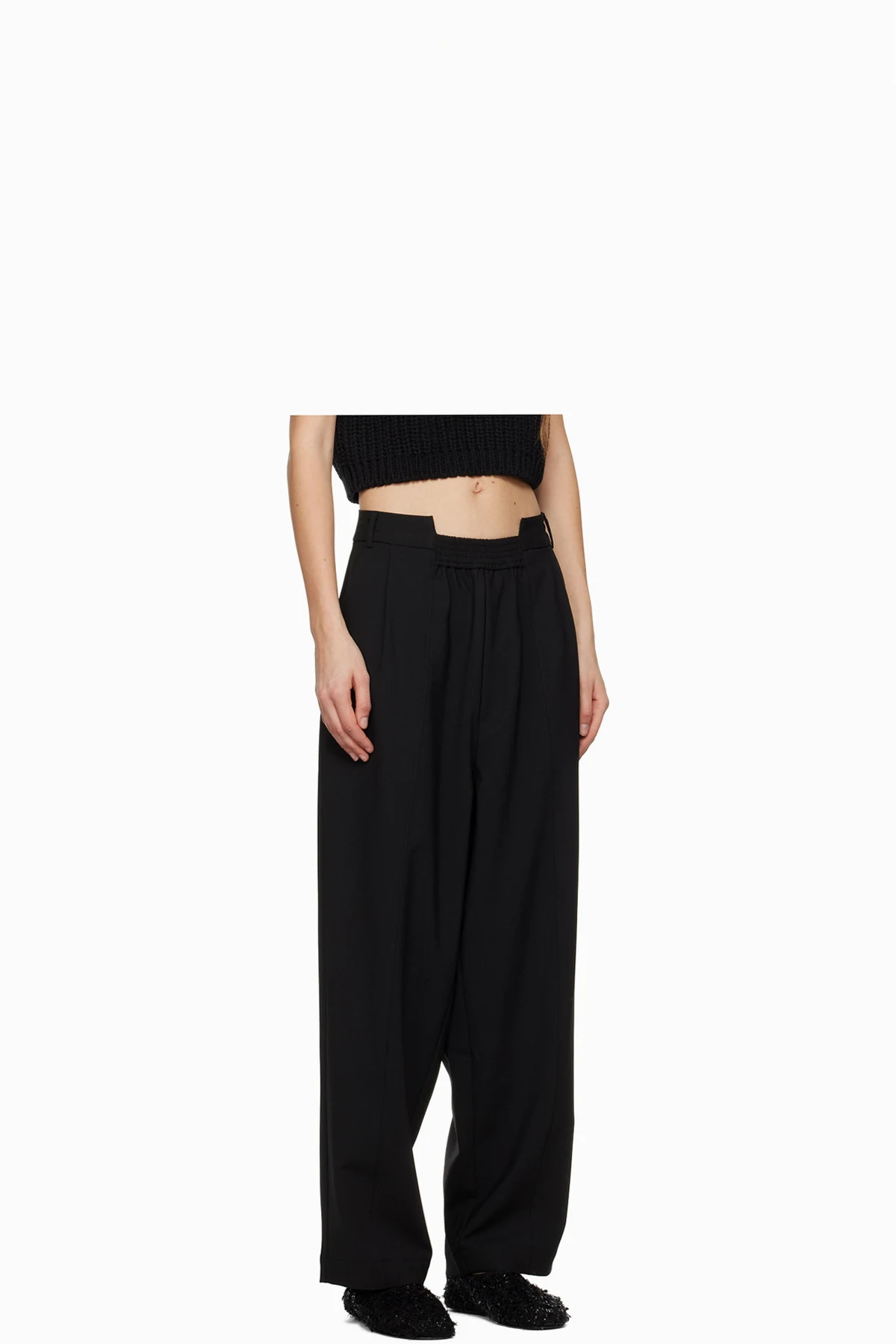 BLACK Wide-leg pleated pants