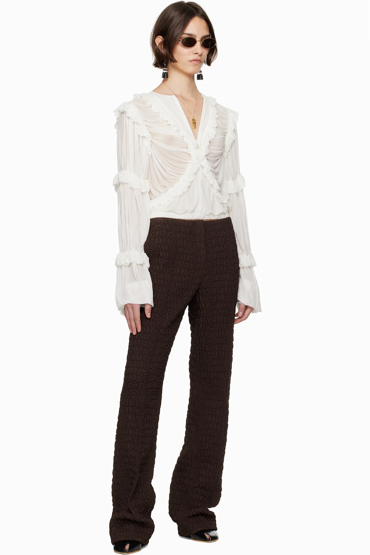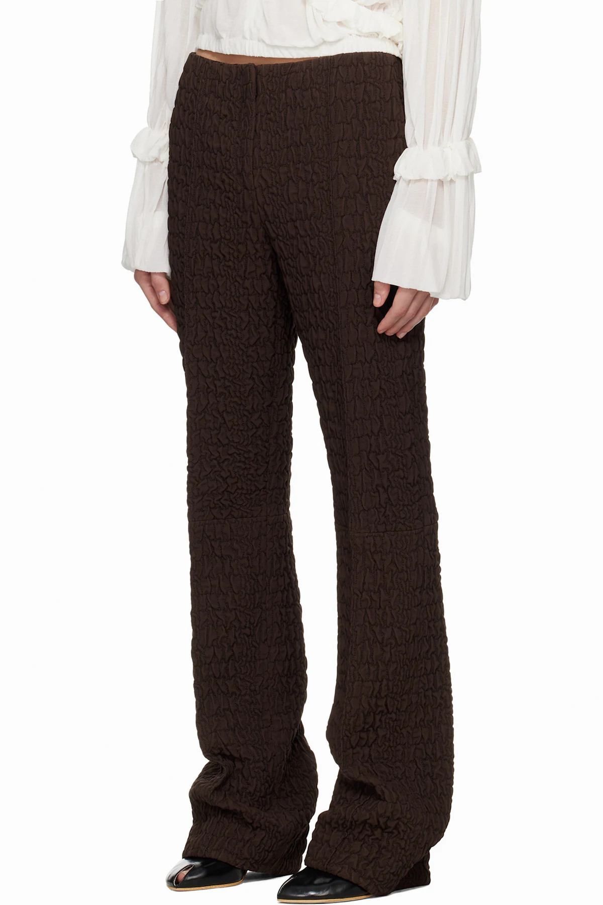 Quilted plain-woven wool- and silk-blend trousers.
