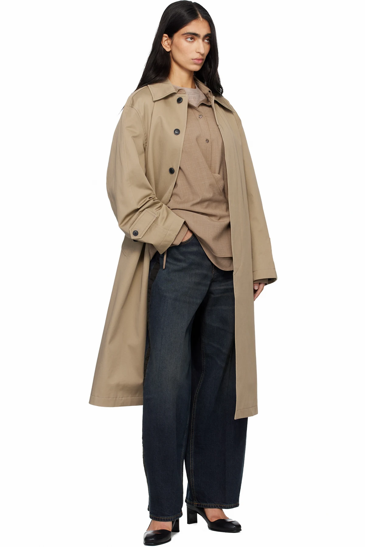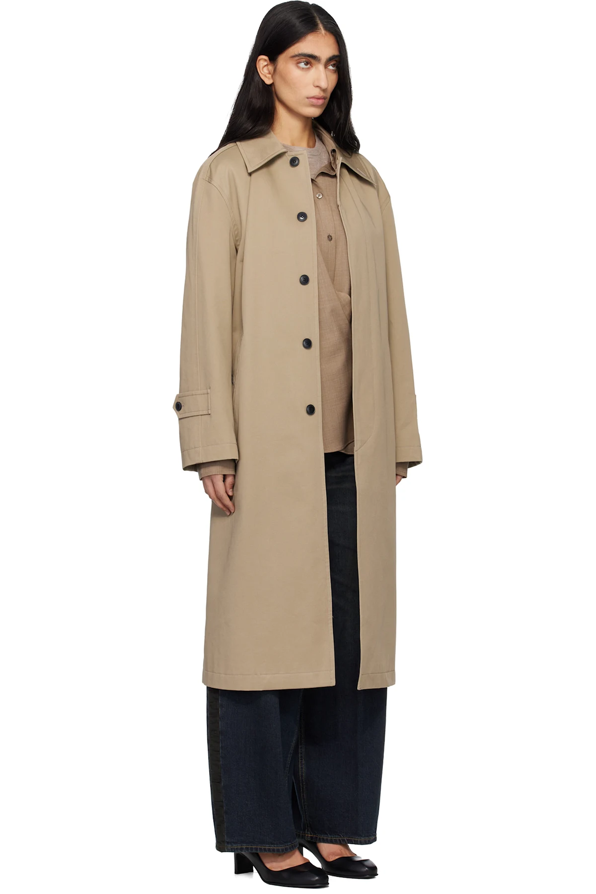 Cotton gabardine trench coat.