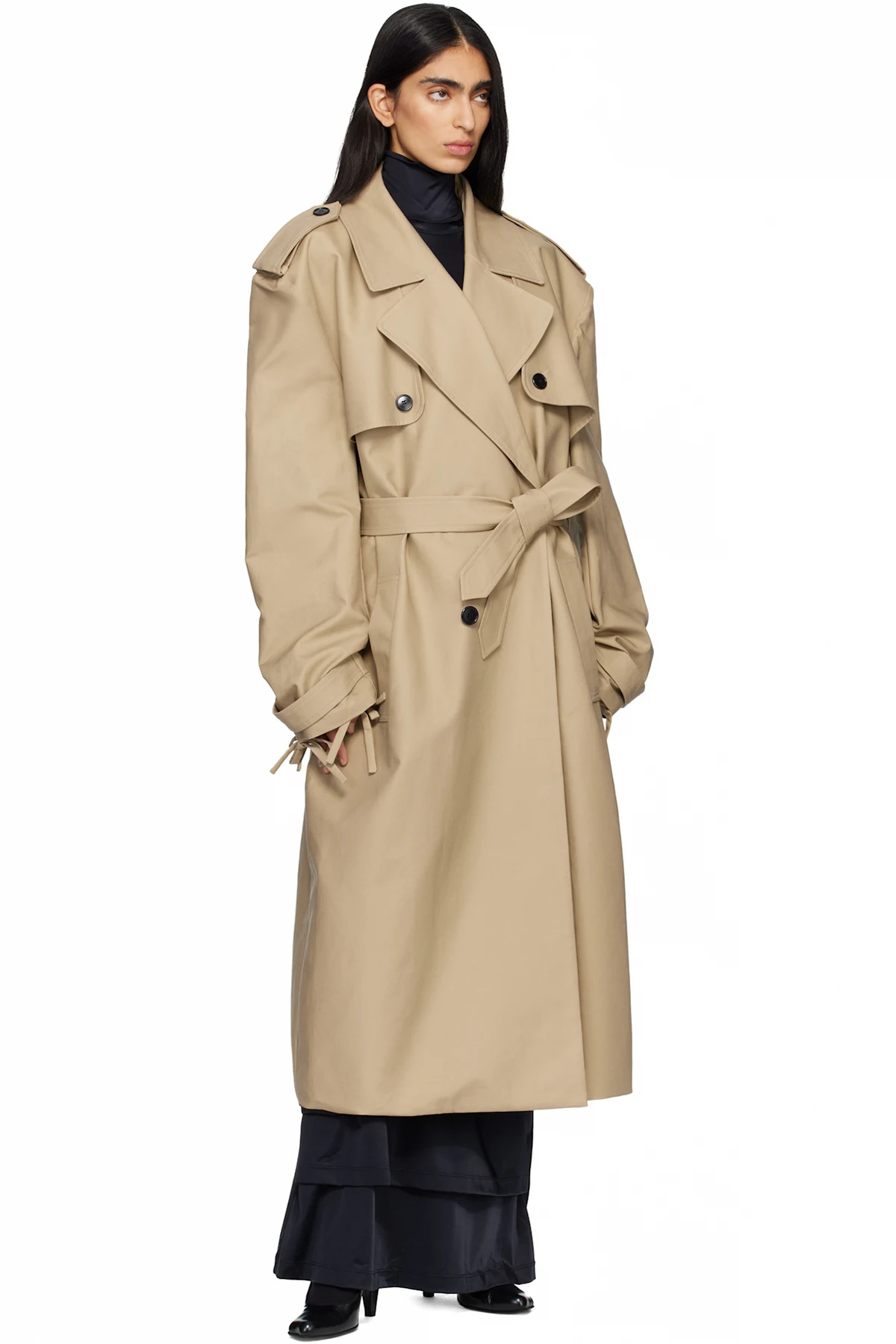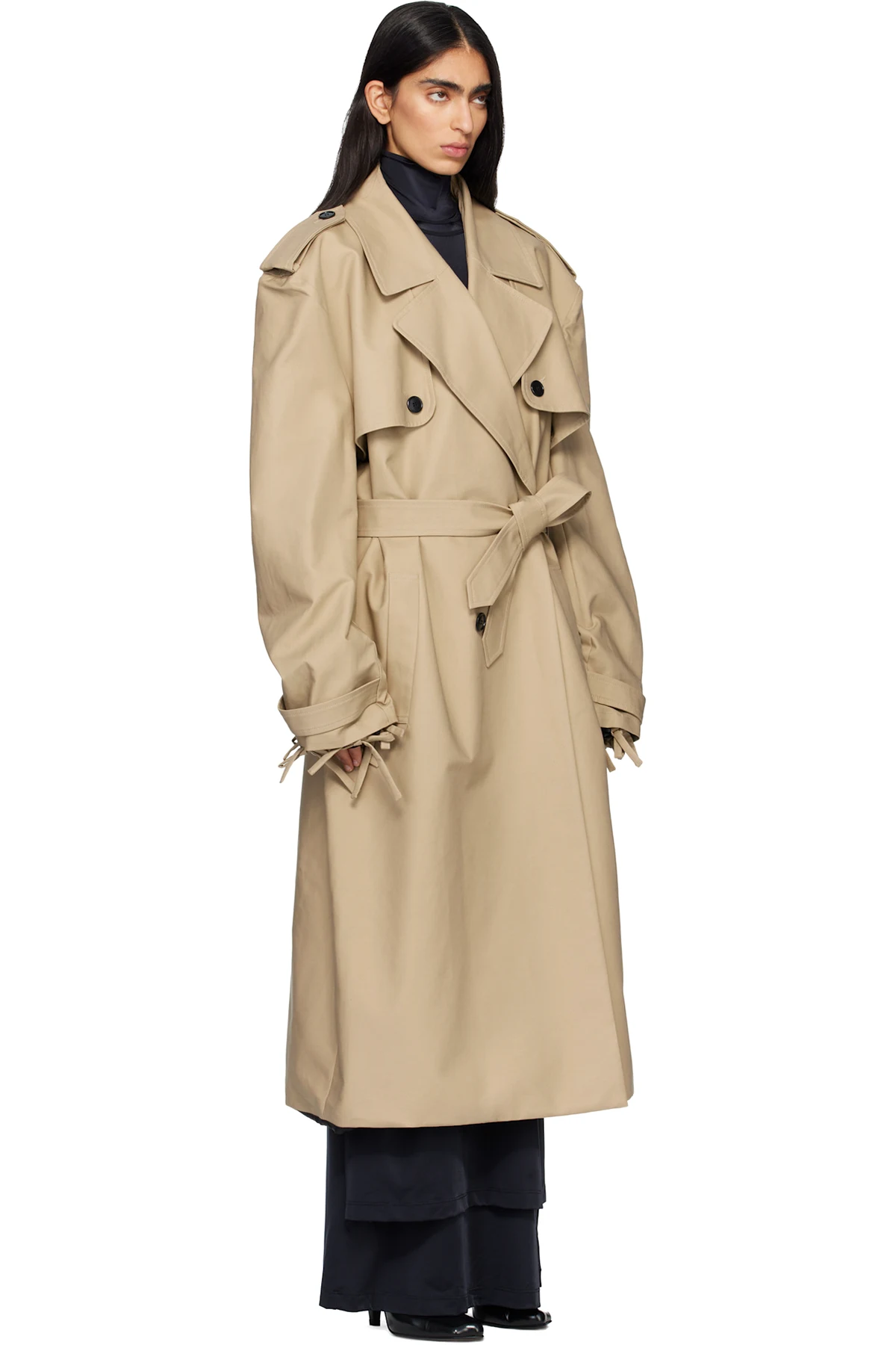 Cotton gabardine trench coat.