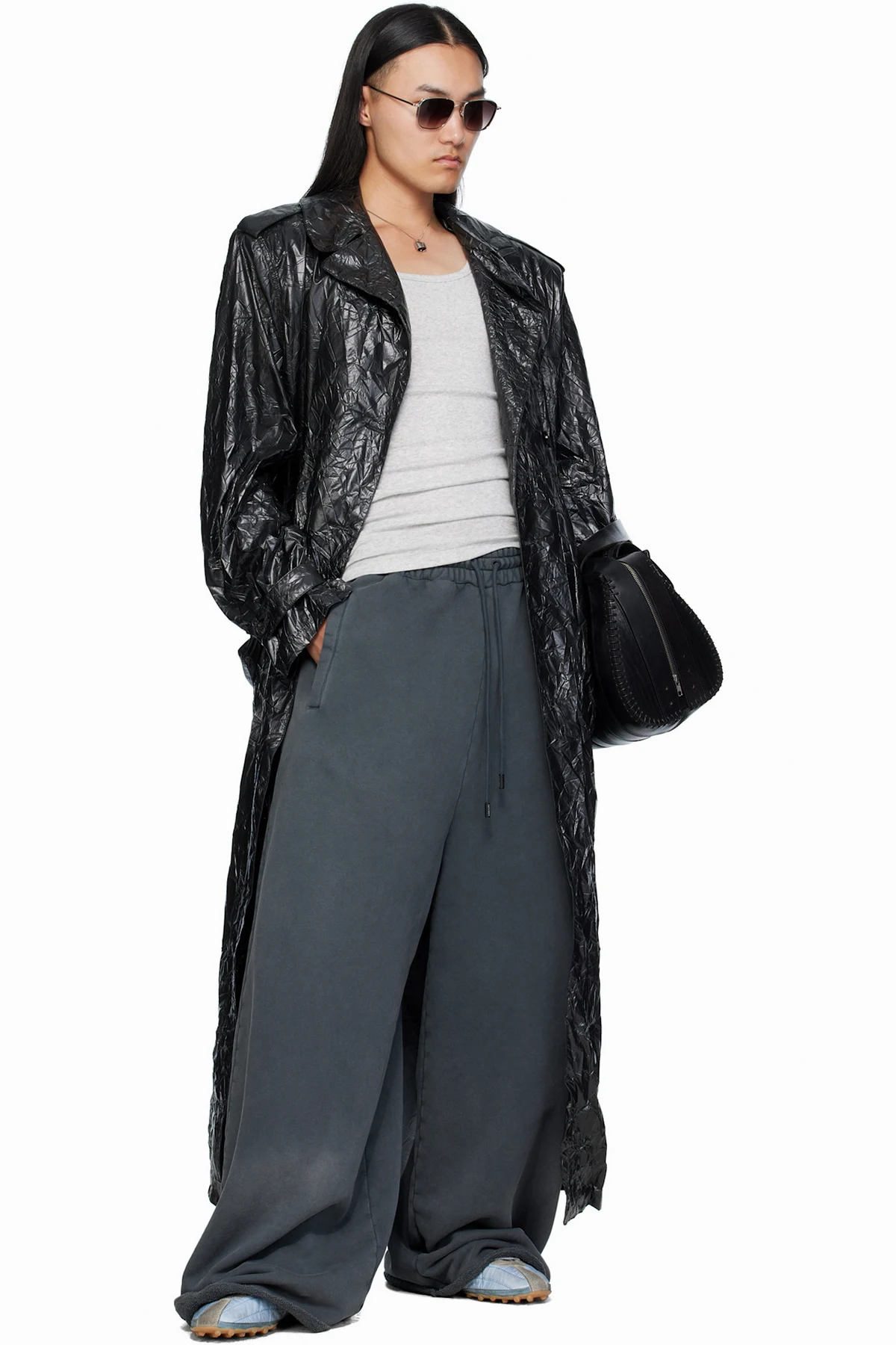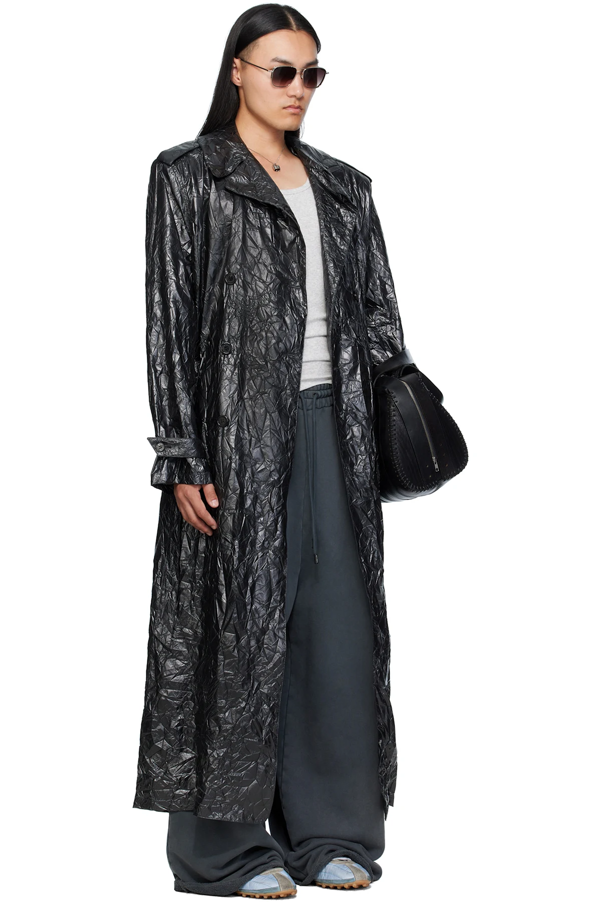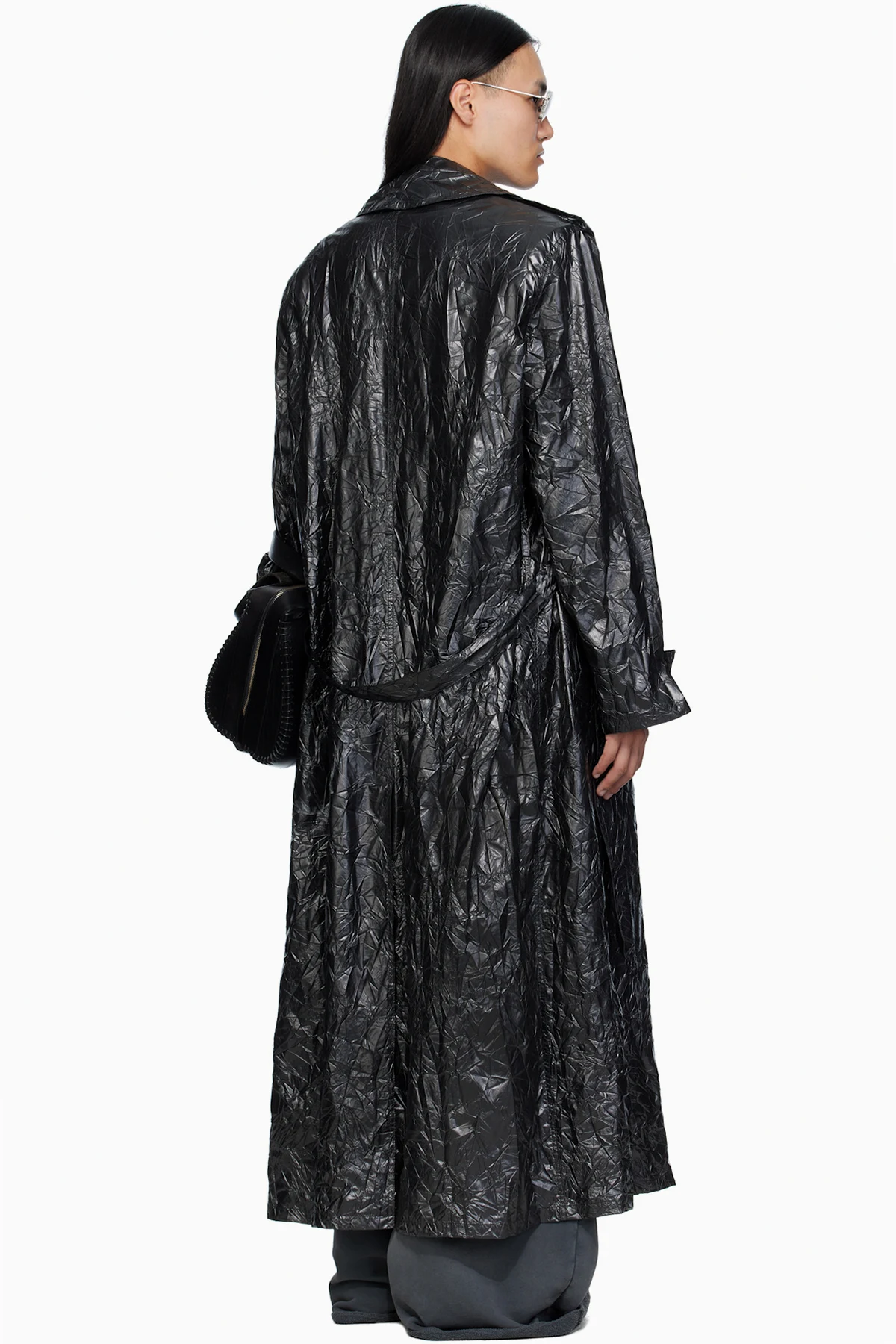 Black Crumple Trench Coat