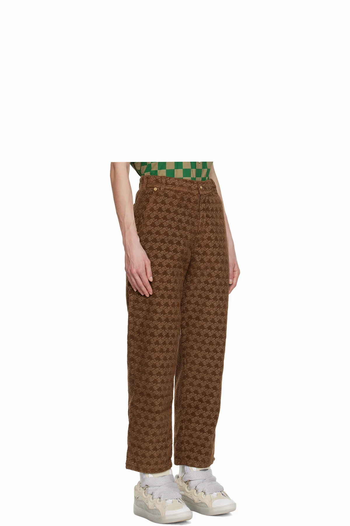 Garment-dyed insulated cotton corduroy trousers. Logo pattern printed throughout.