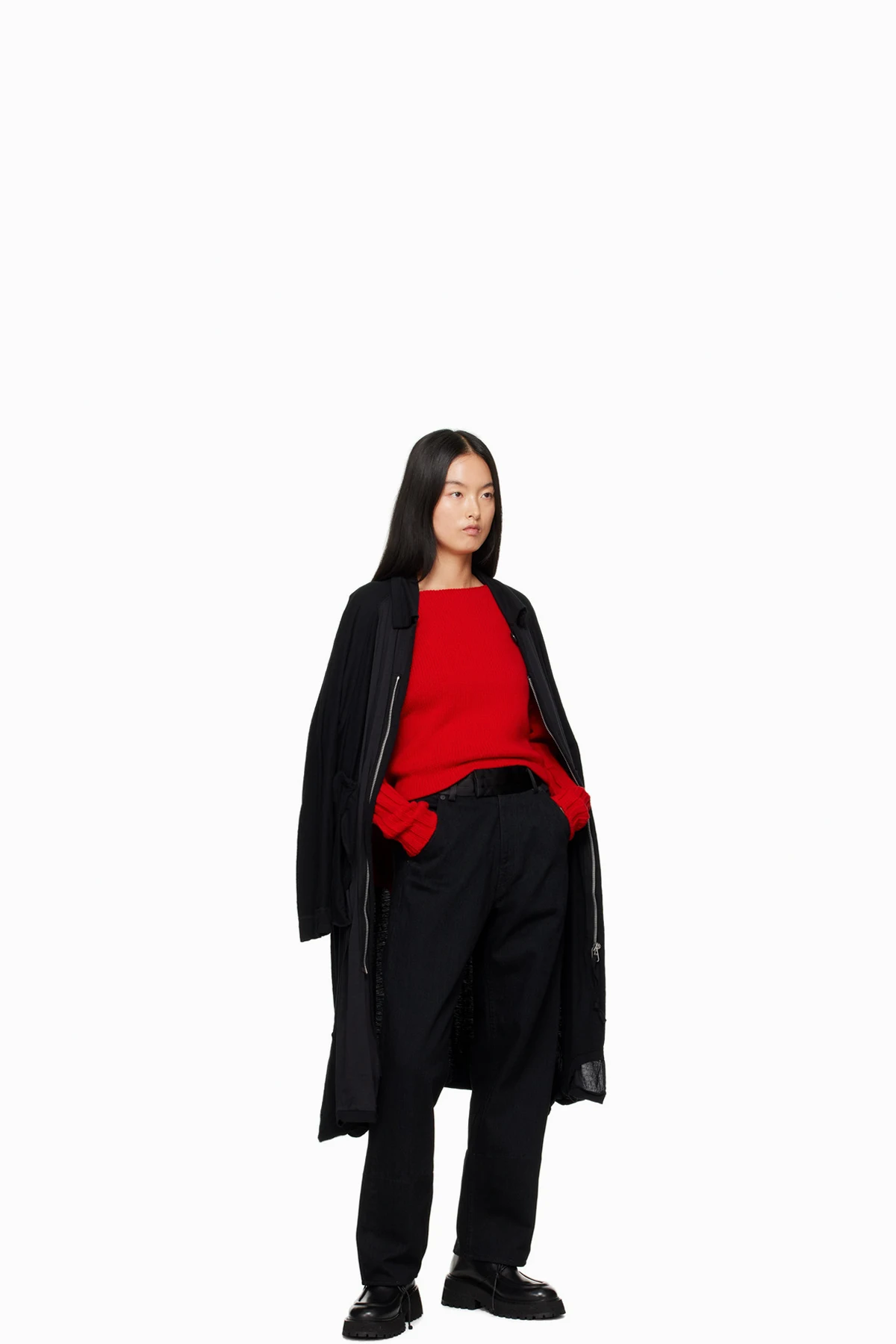 · Pleats at waistband