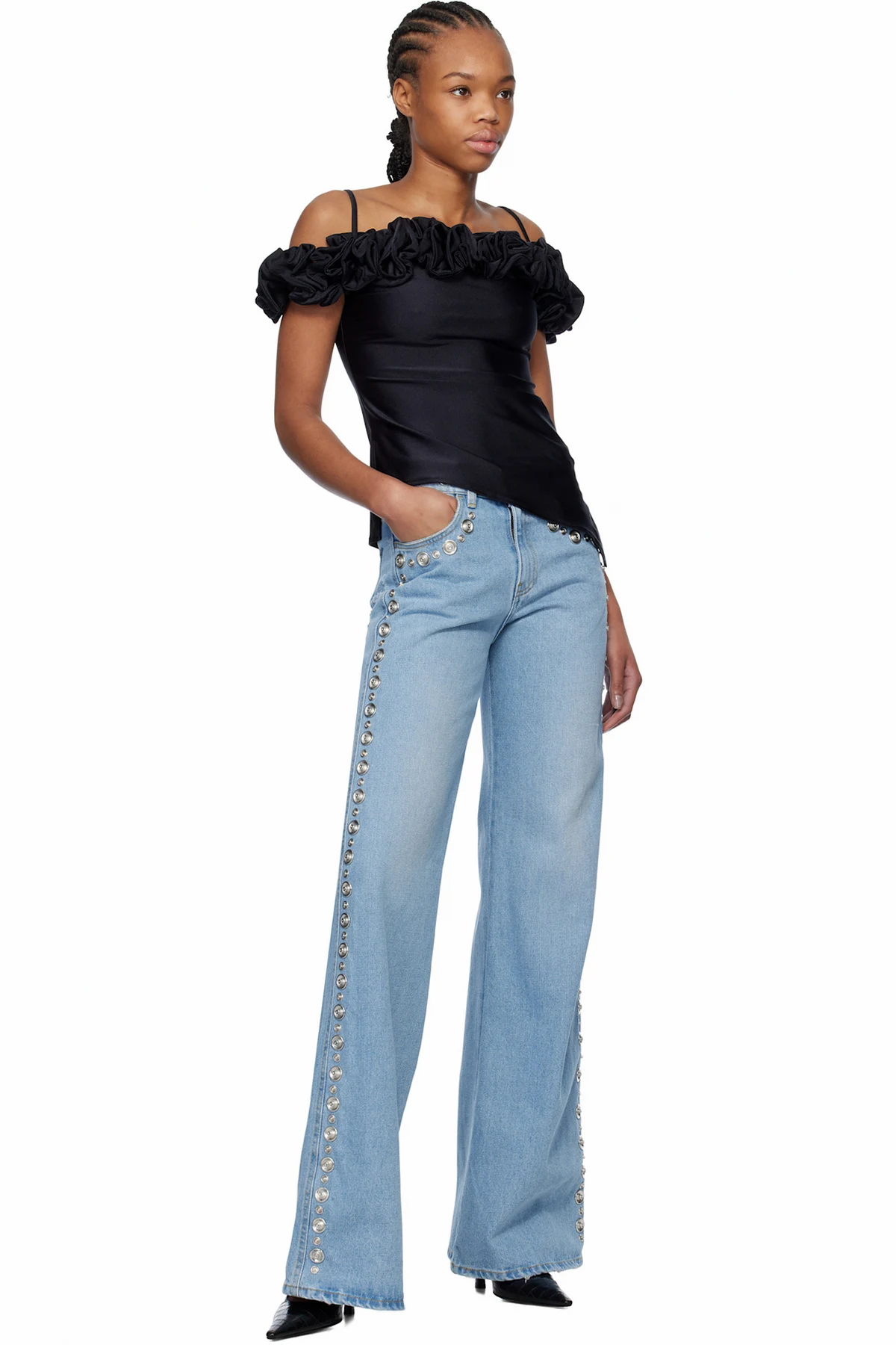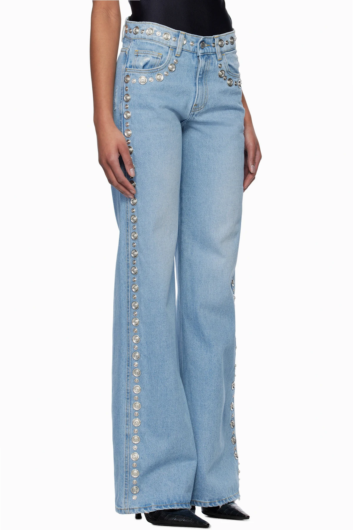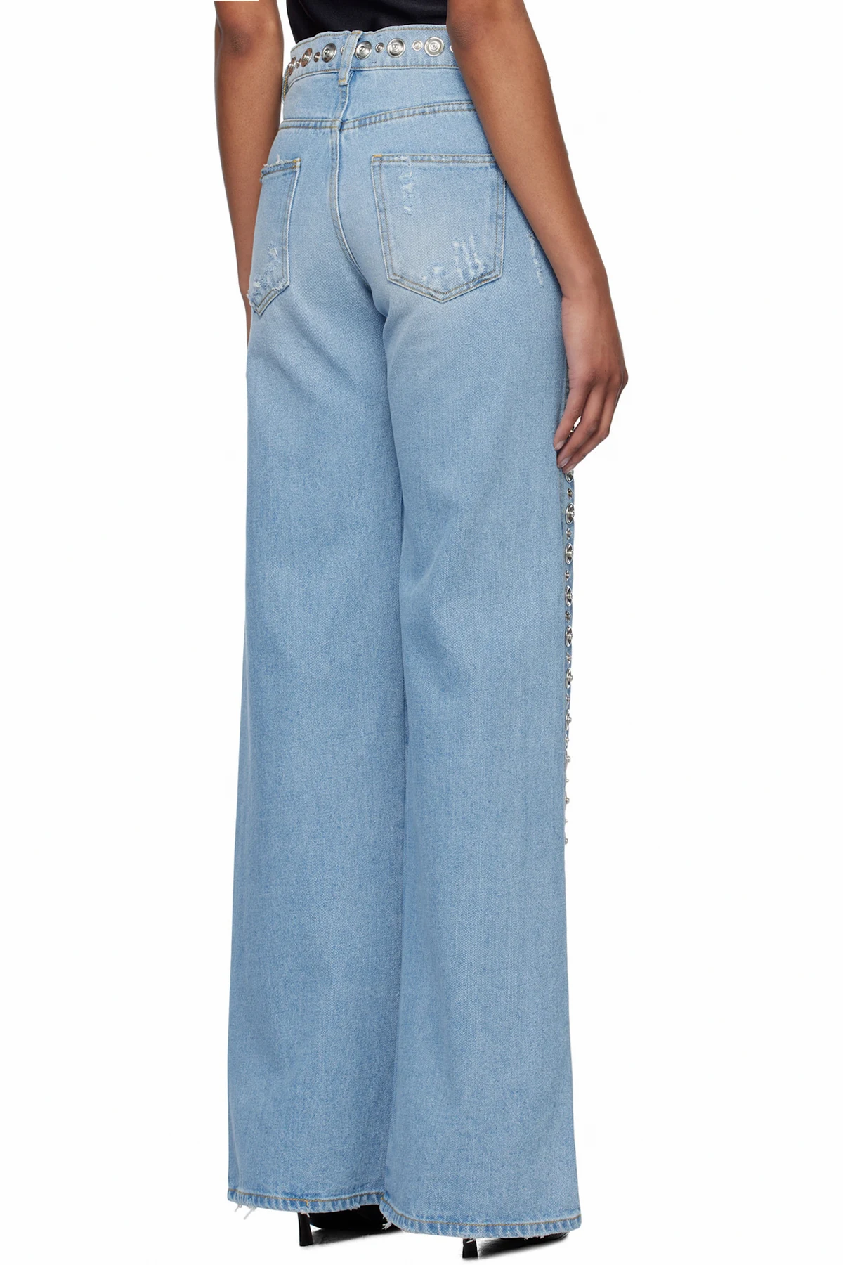 Blue Studded Wide Leg Jeans