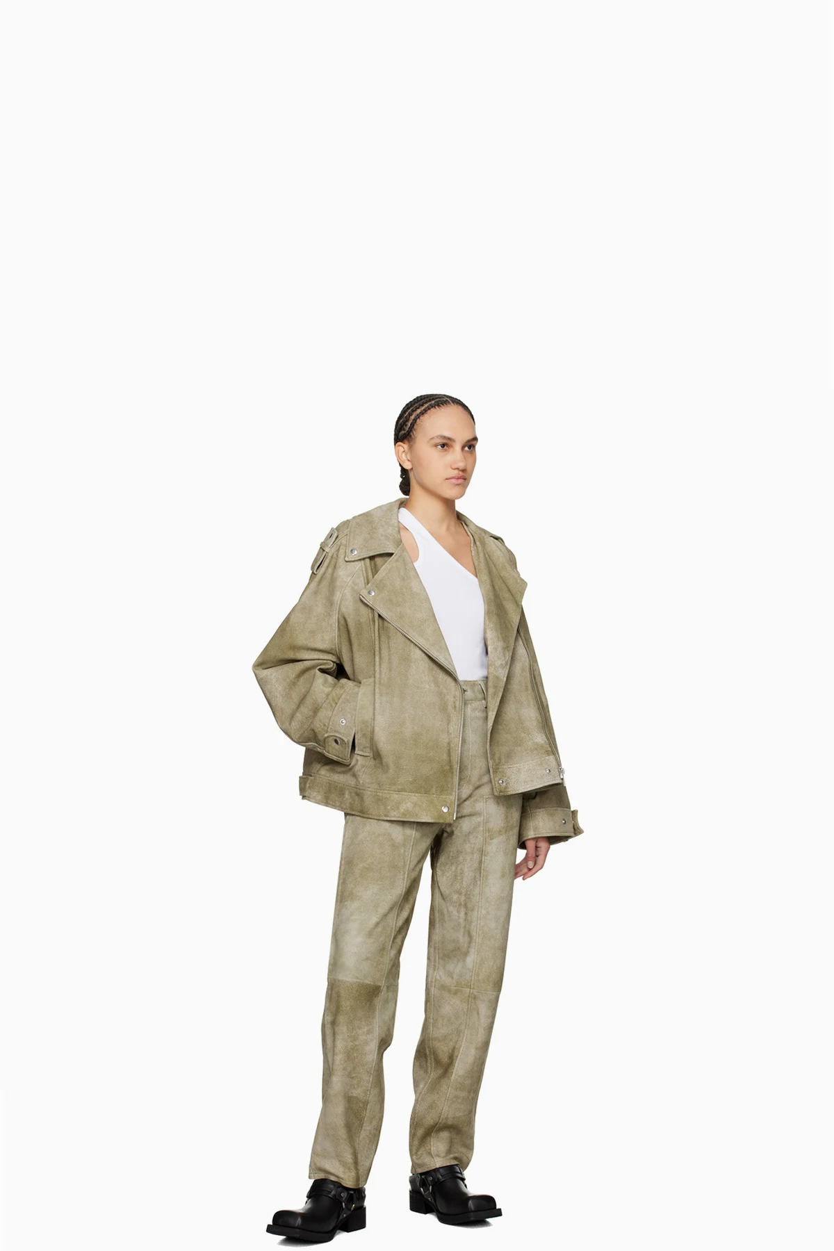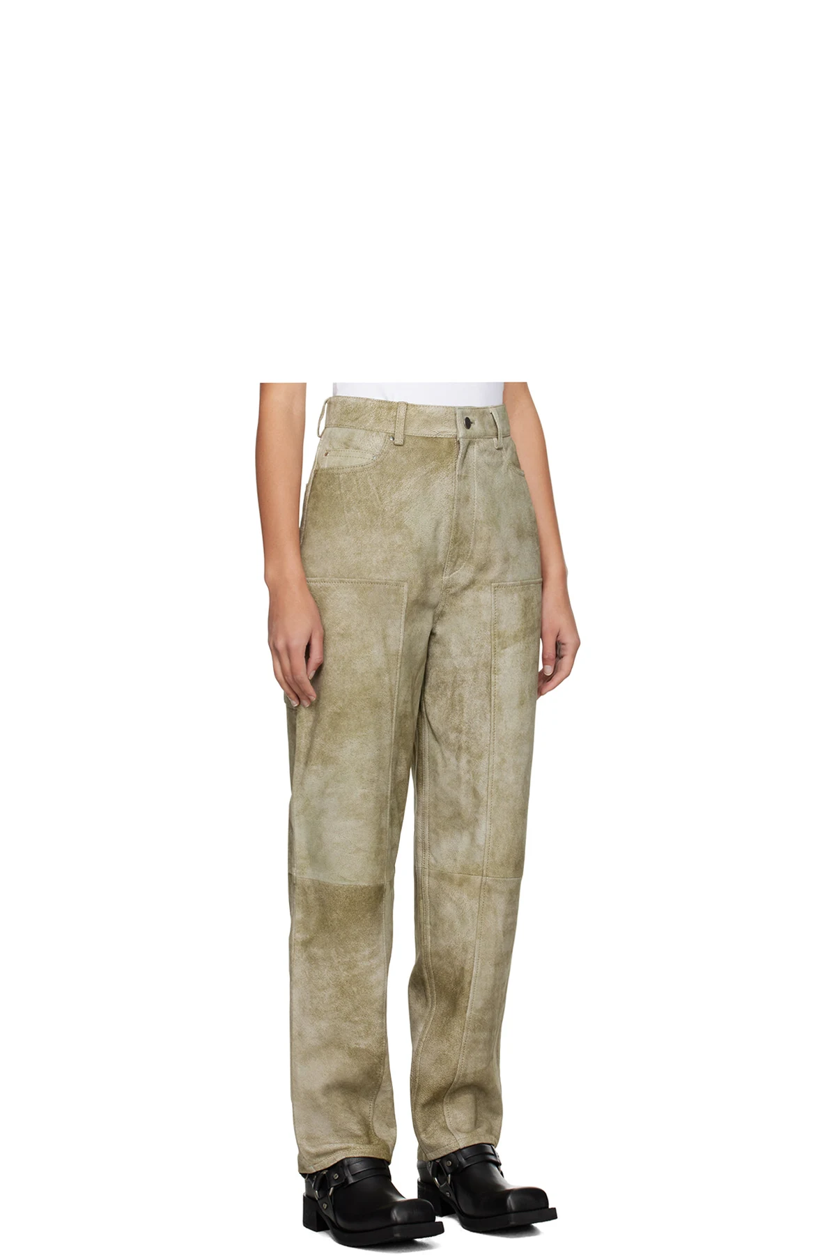 LWG-certified sheepskin suede pants. Subtle fading throughout.
