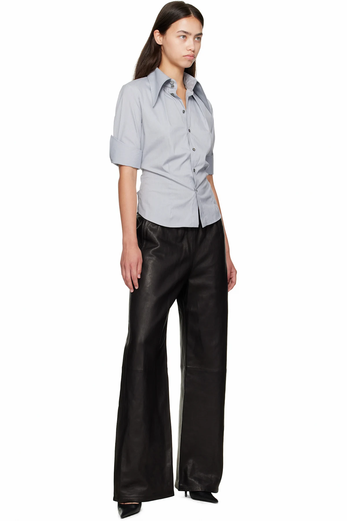 Grained lambskin pants.