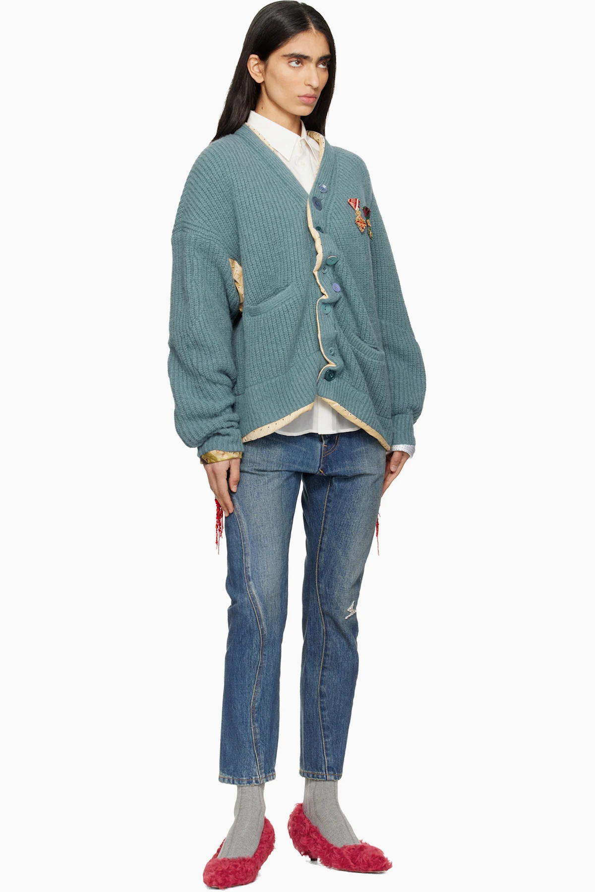 · Beaded fringe at outseams