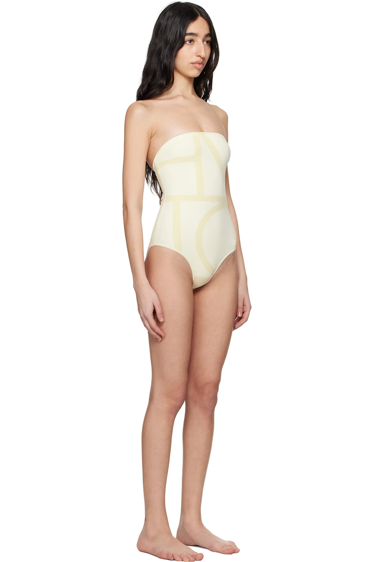 Beige Monogram Strapless Swimsuit