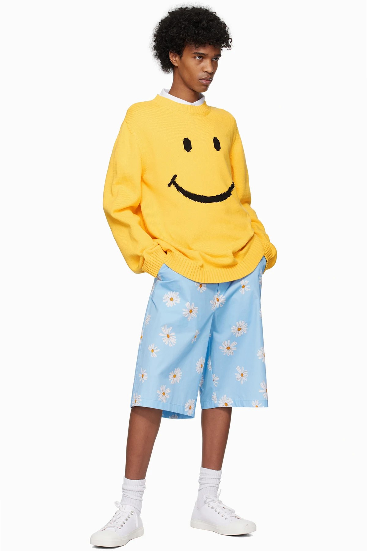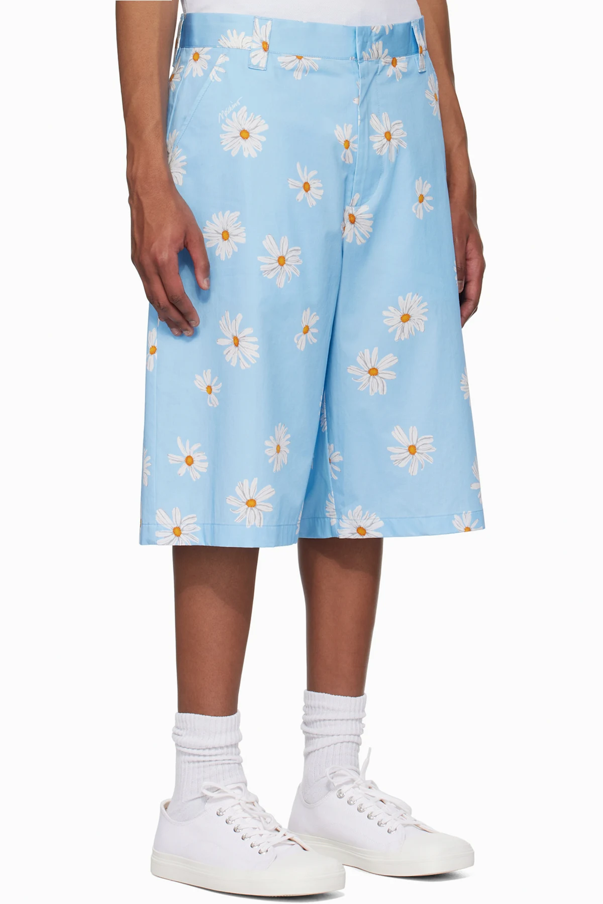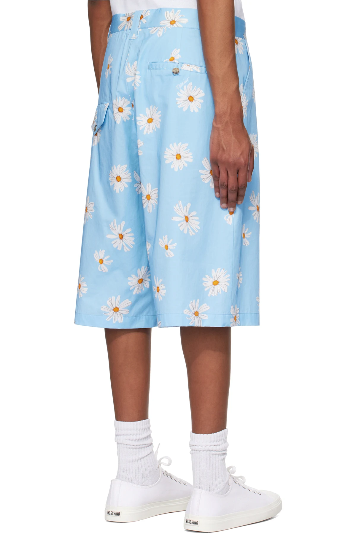 Blue Satin Bermuda Allover Daisy Shorts