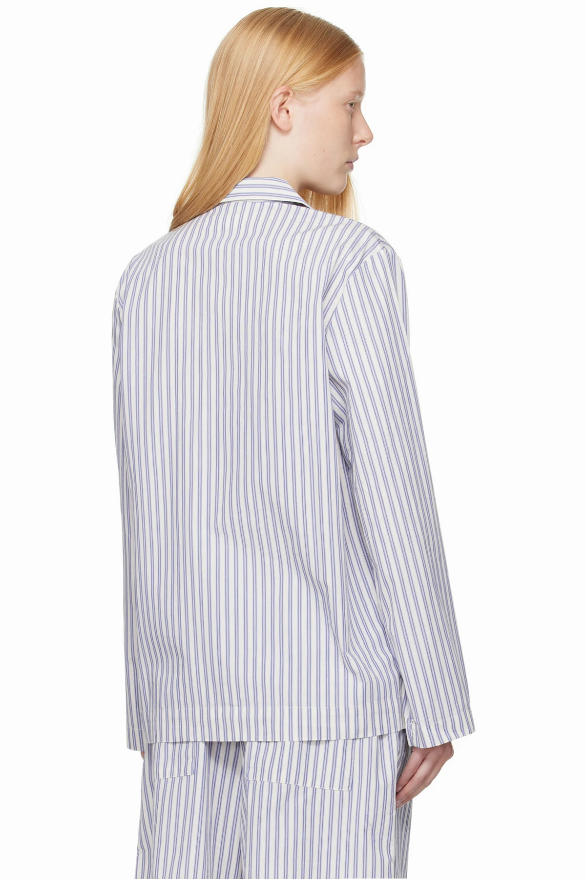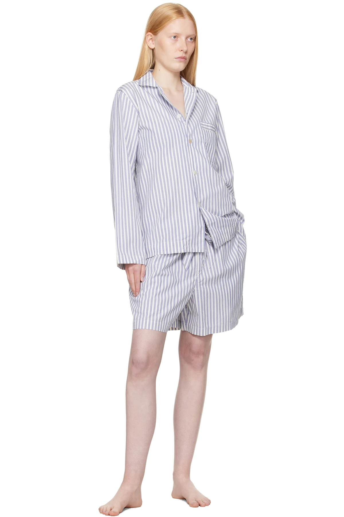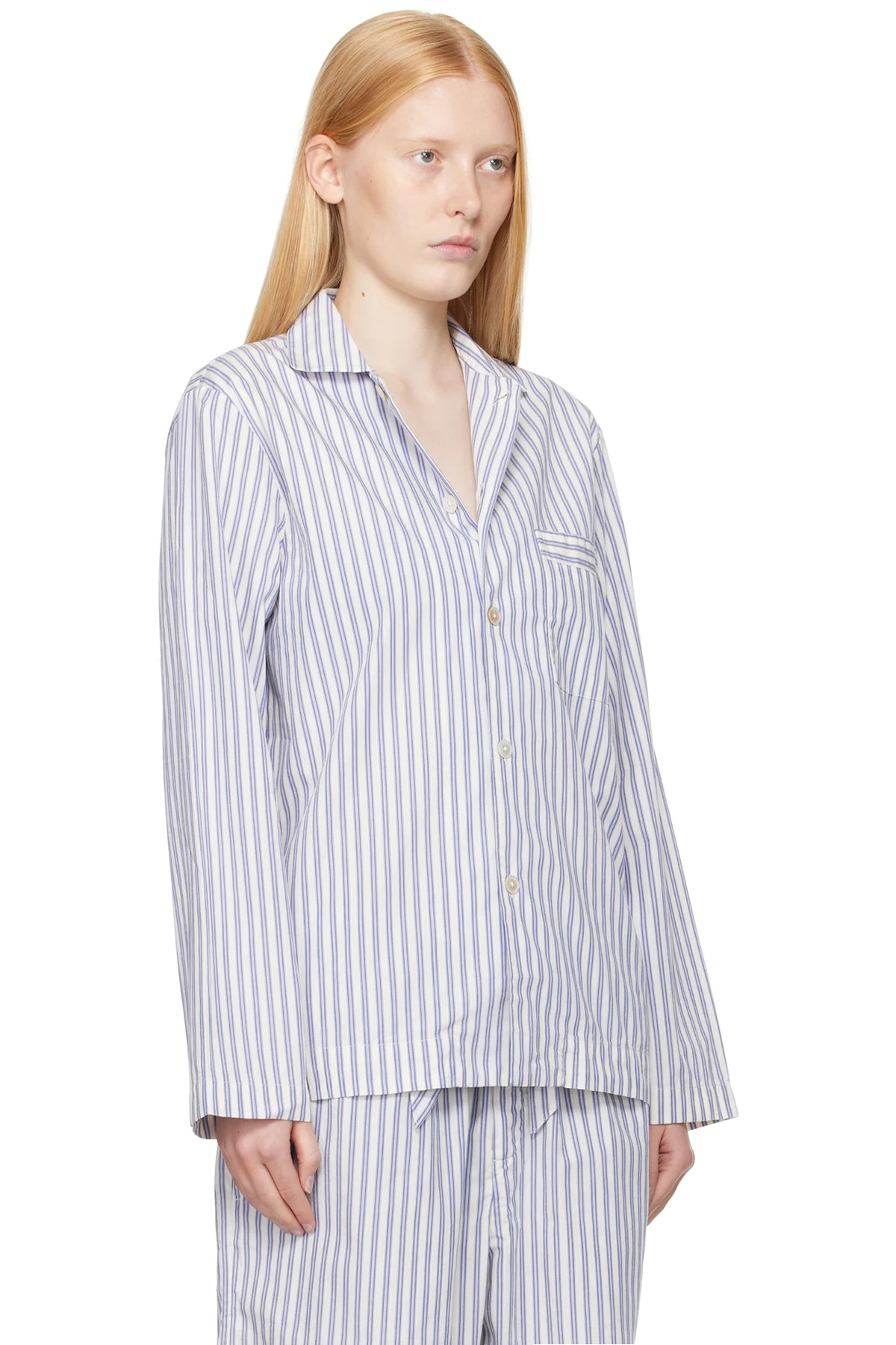 Lightweight organic cotton poplin pyjama shirt. Stripes throughout.