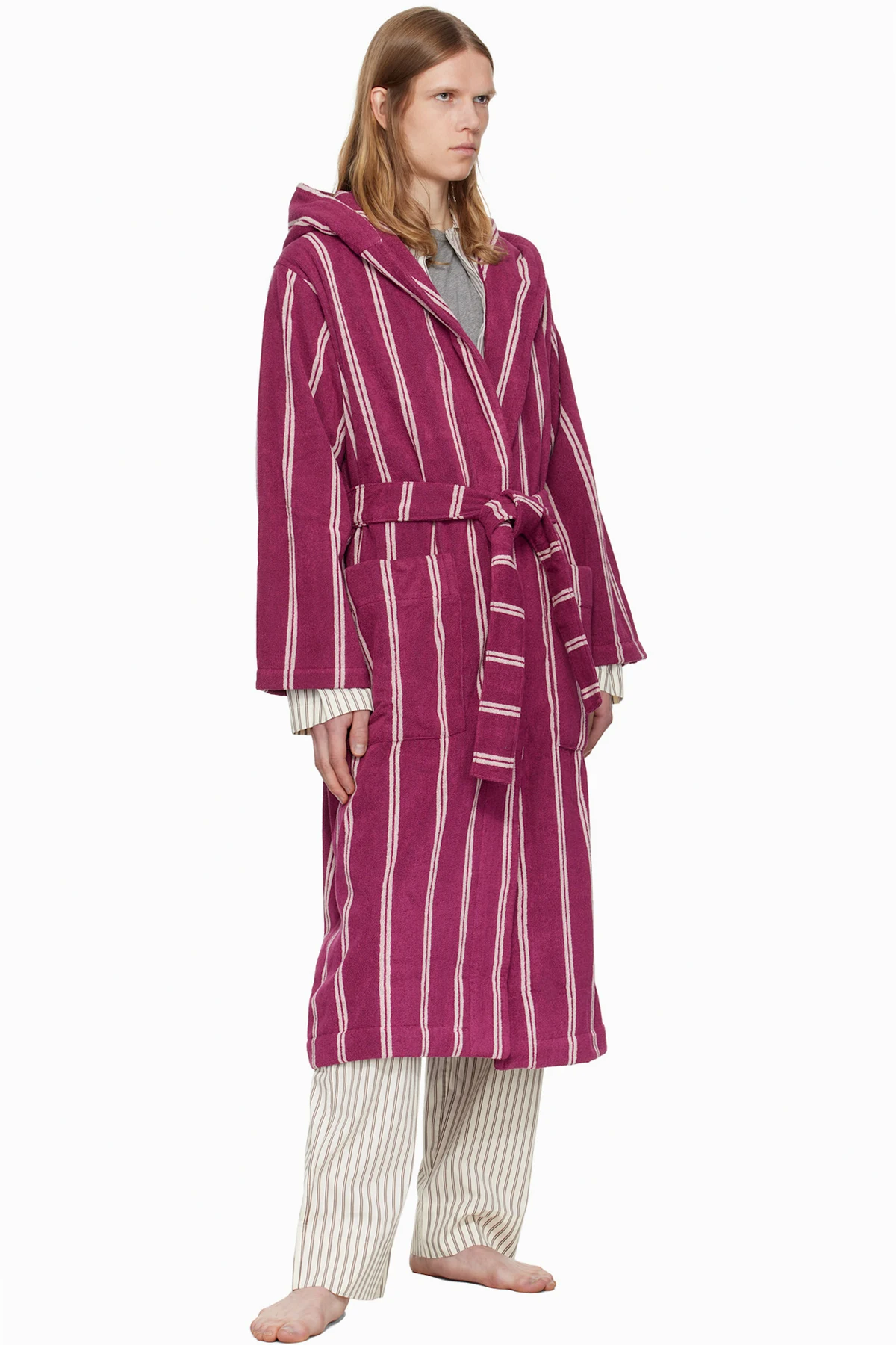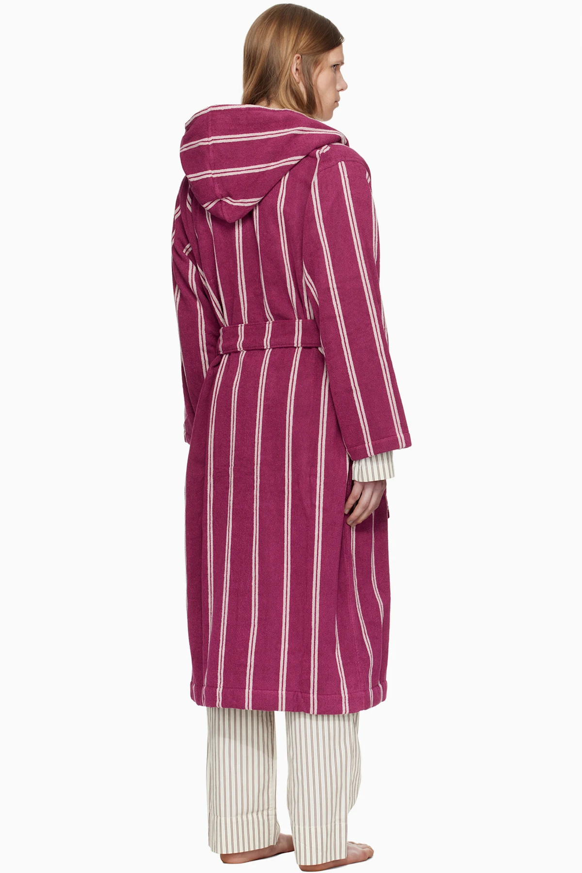 Heavyweight 385 gsm organic cotton terrycloth bathrobe. Stripes throughout.