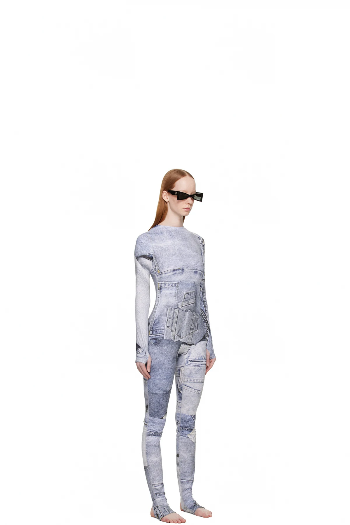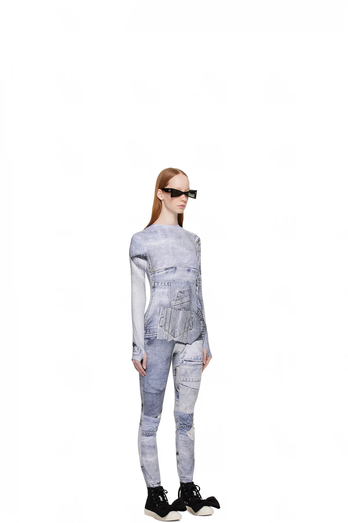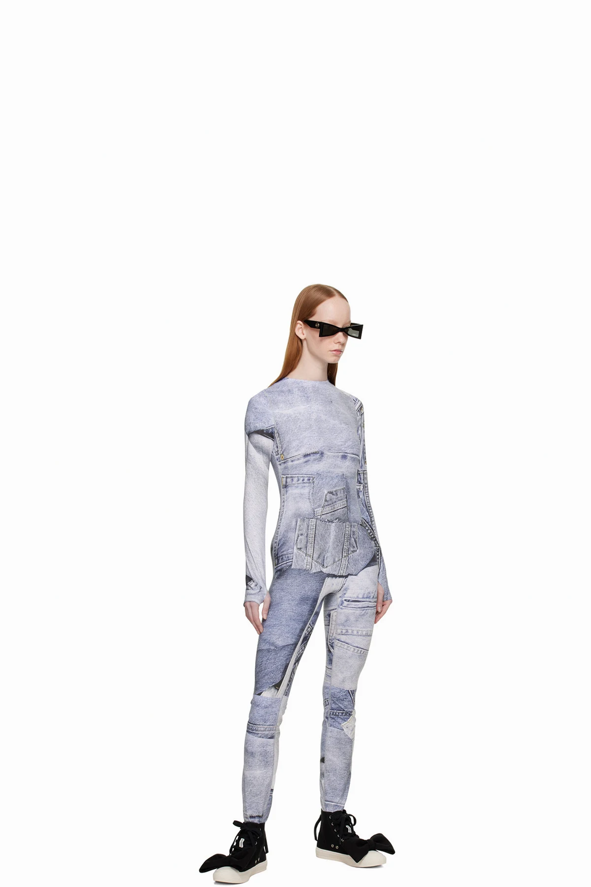 Stretch polyester-blend jersey bodysuit. Graphic pattern printed throughout.