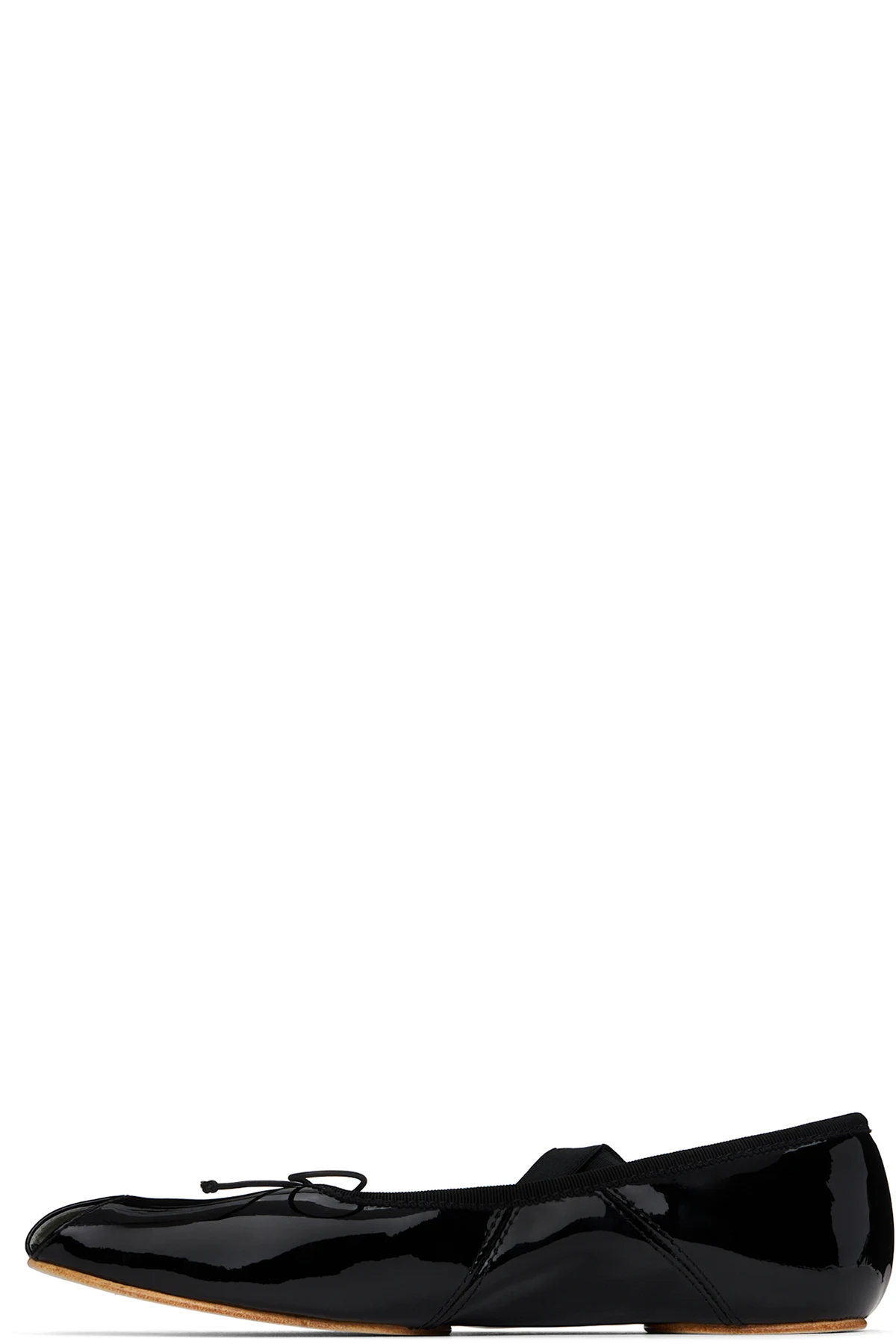 Patent leather ballerina flats in black.