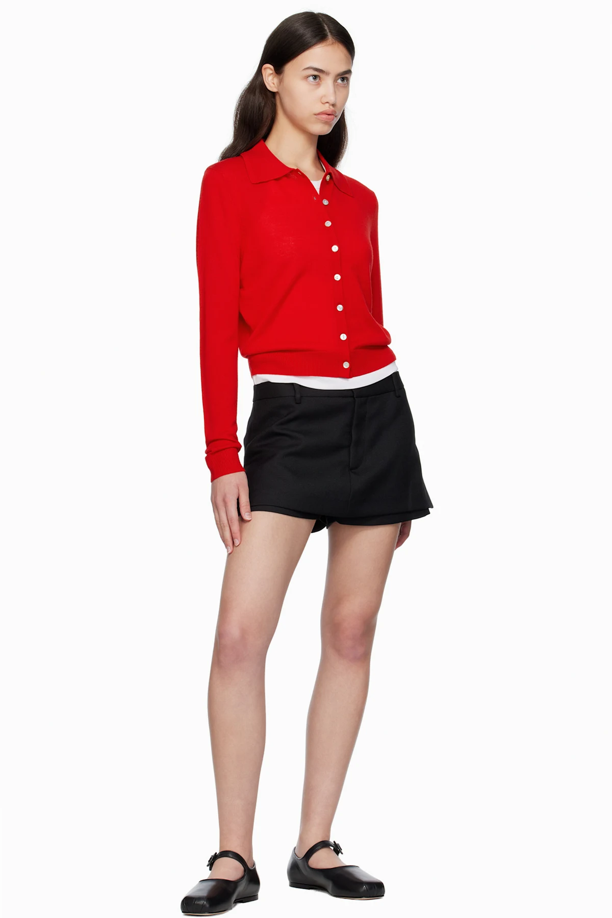 Buffed leather Mary Jane-style ballerina flats.