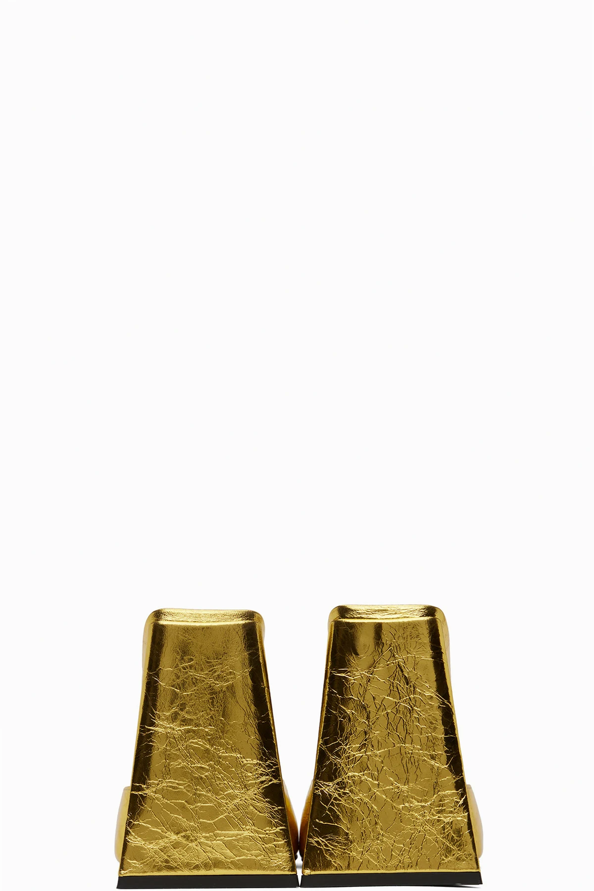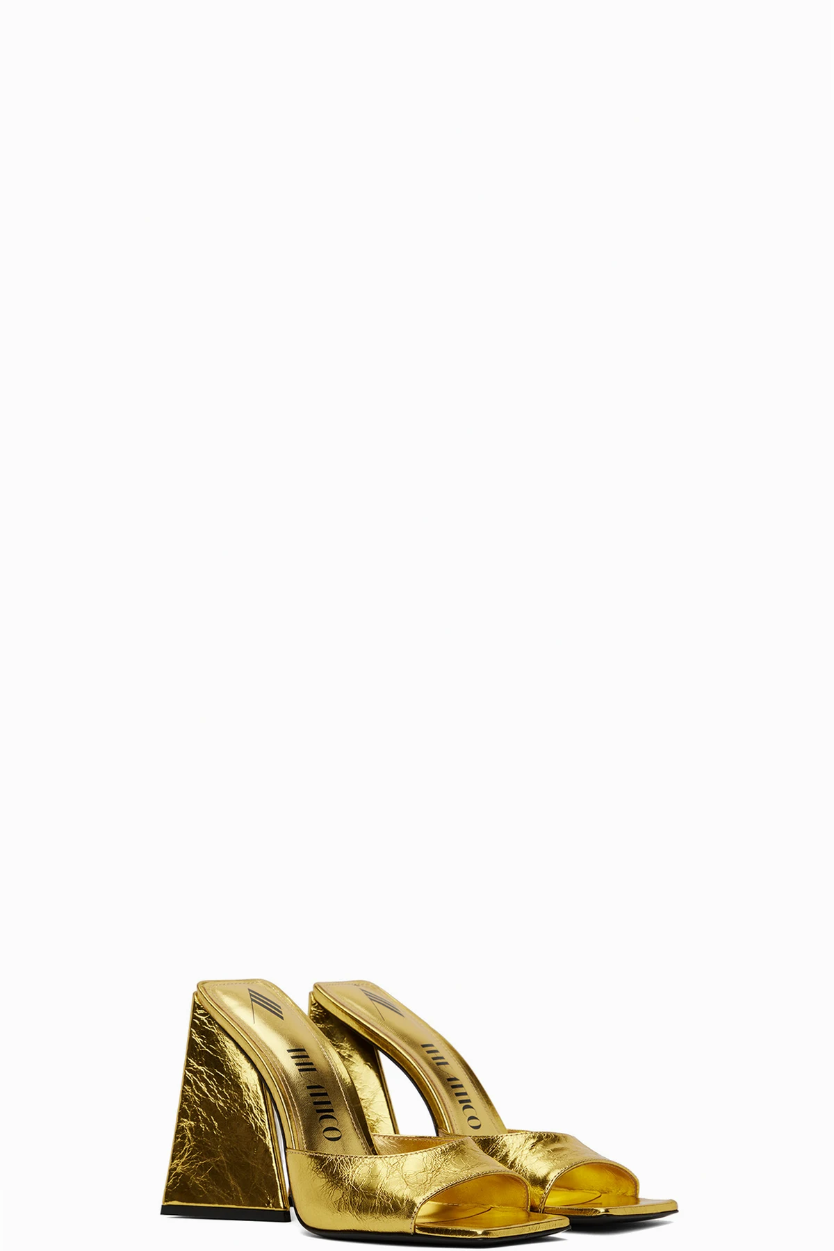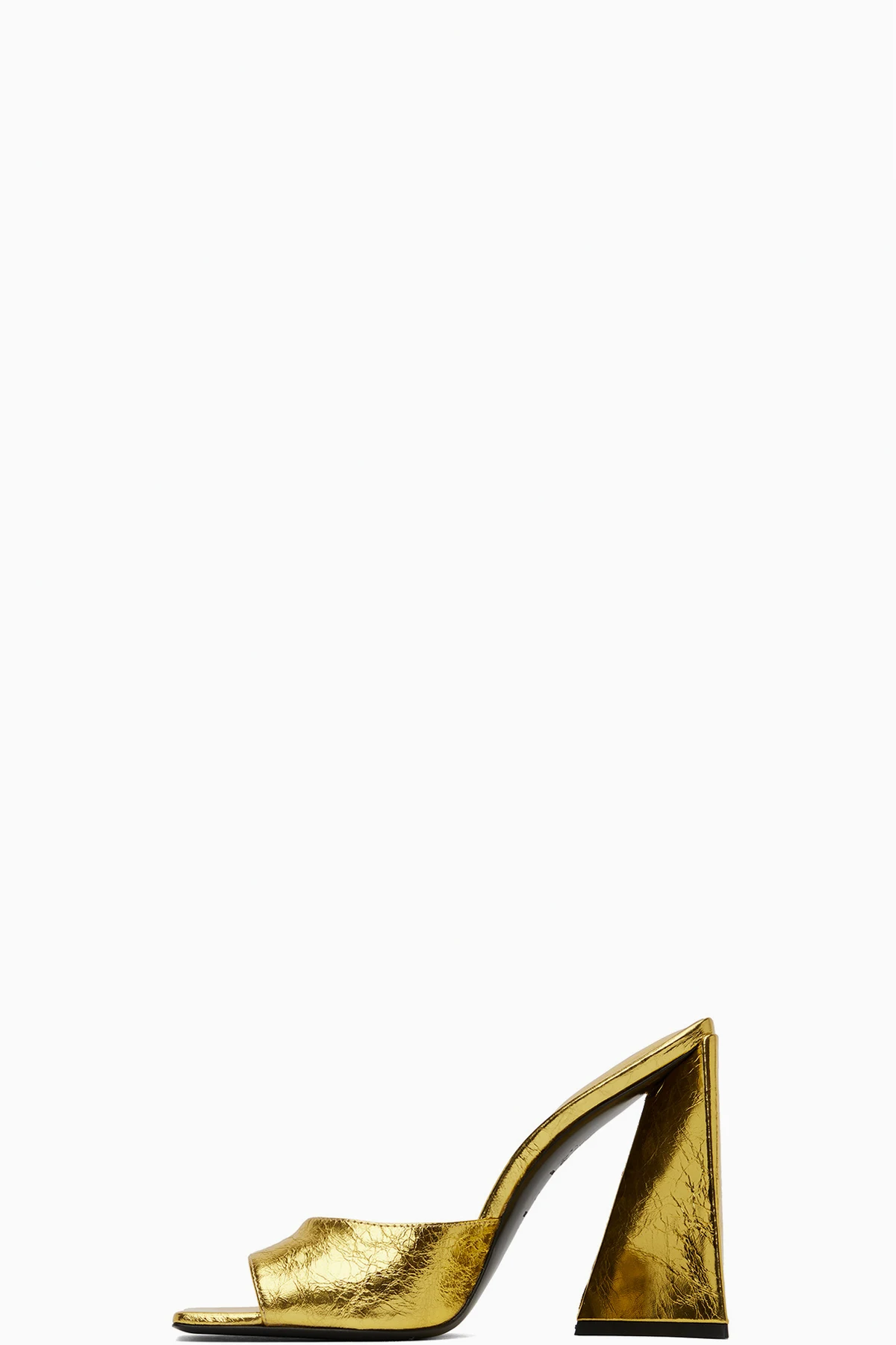 Crinkled leather heeled sandals in gold-tone.