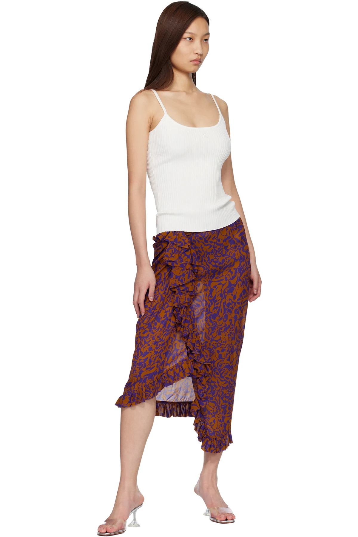 Transparent vinyl heeled sandals.