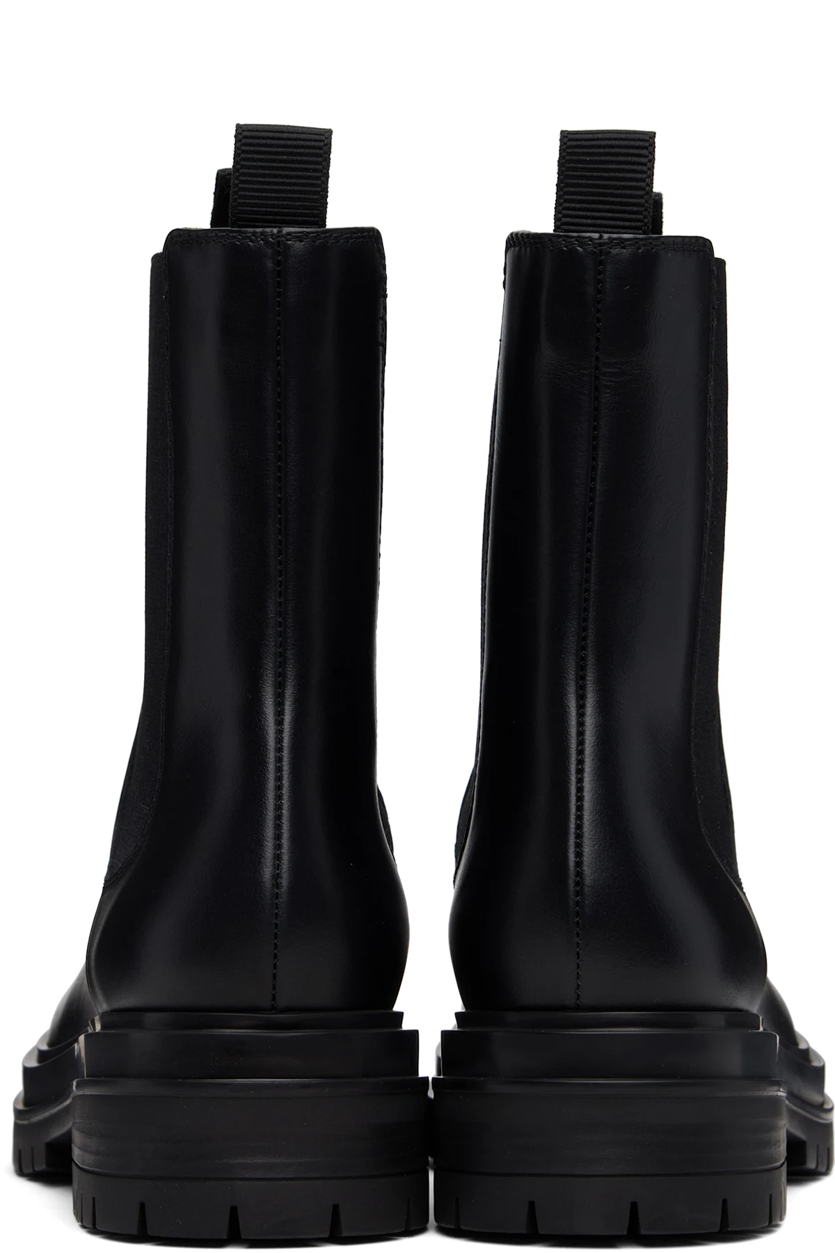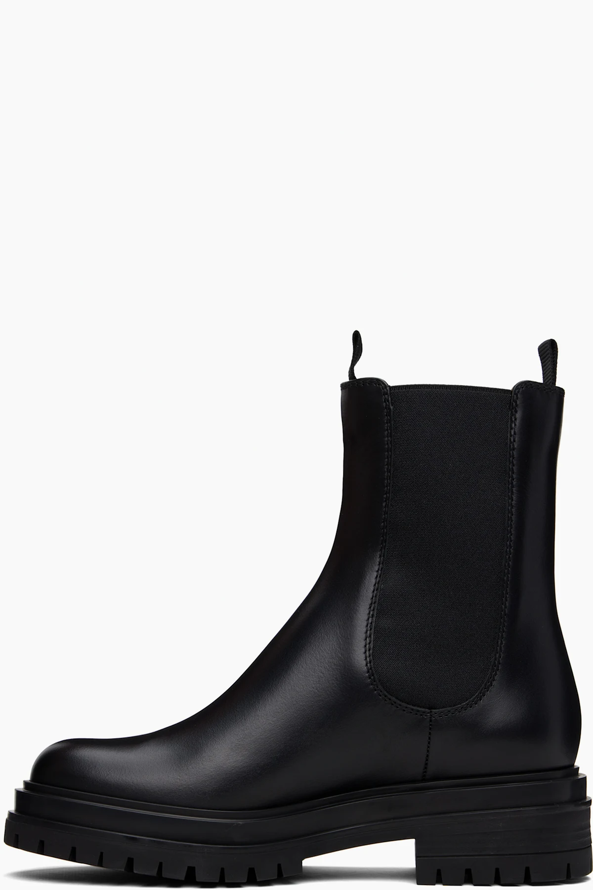 Handcrafted ankle-high buffed calfskin Chelsea boots in black.