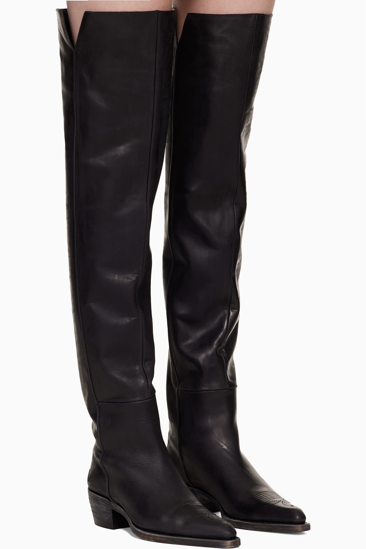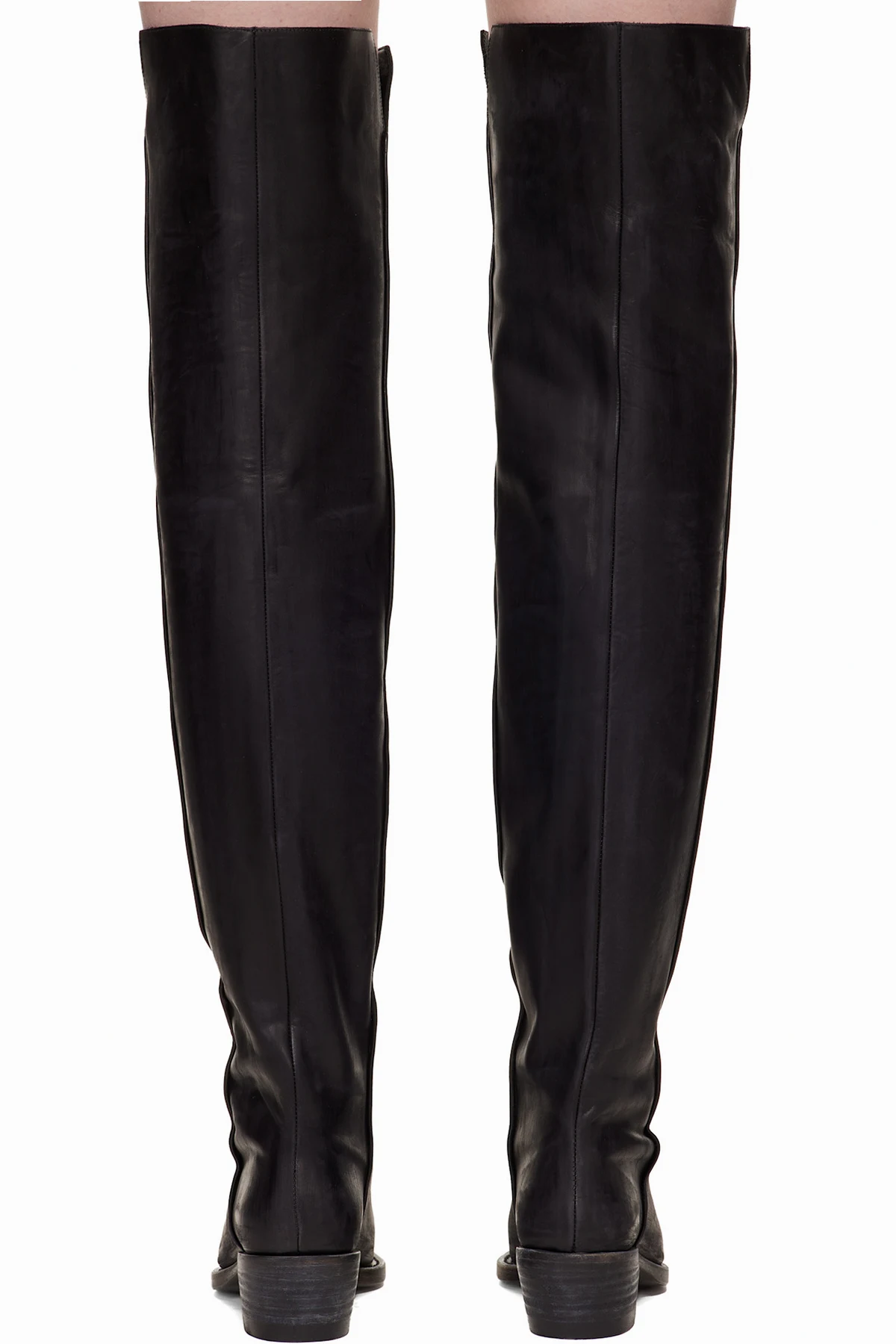 Over-the-knee grained calfskin boots.