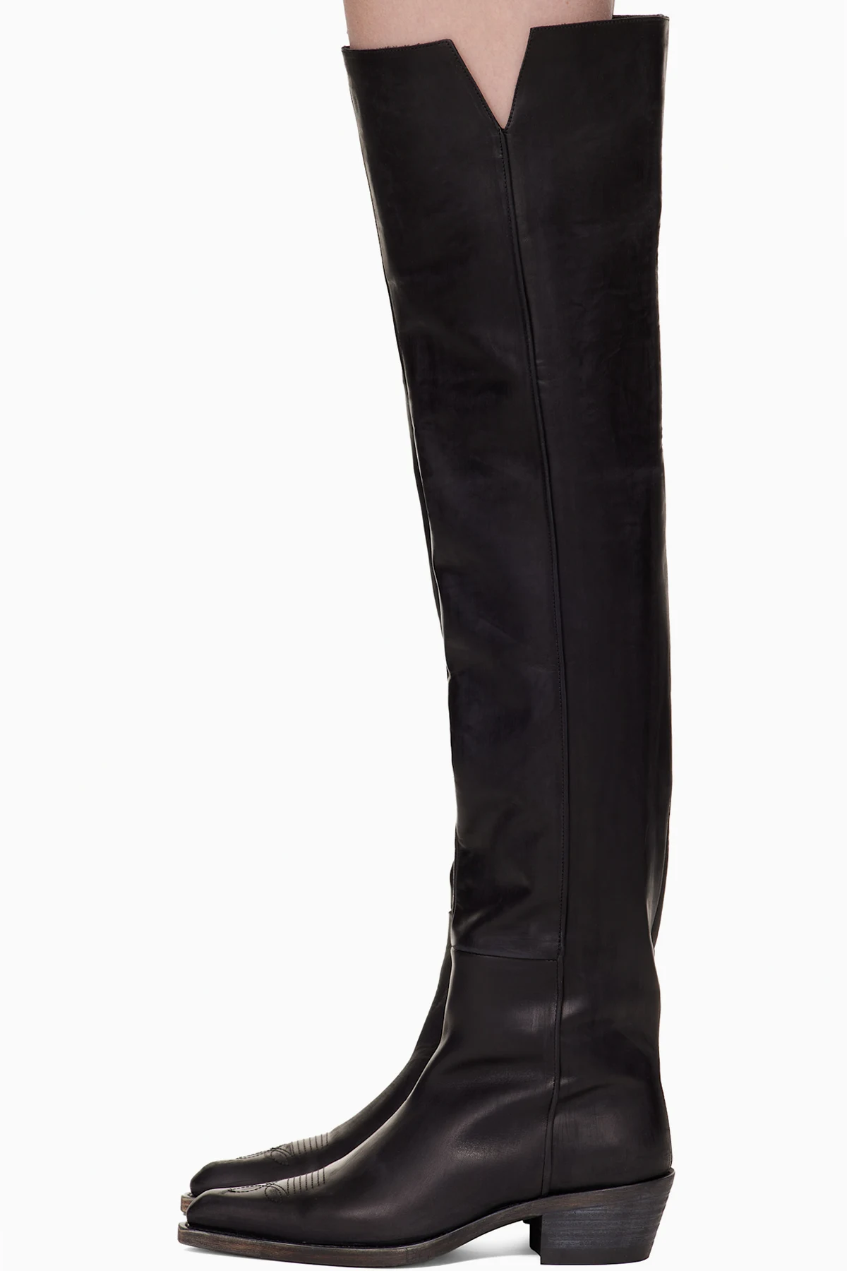 Black Aruna Leather Knee-High Cowboy Boots