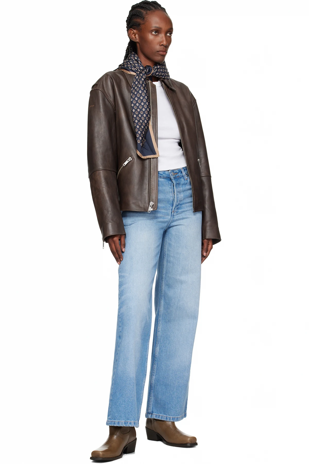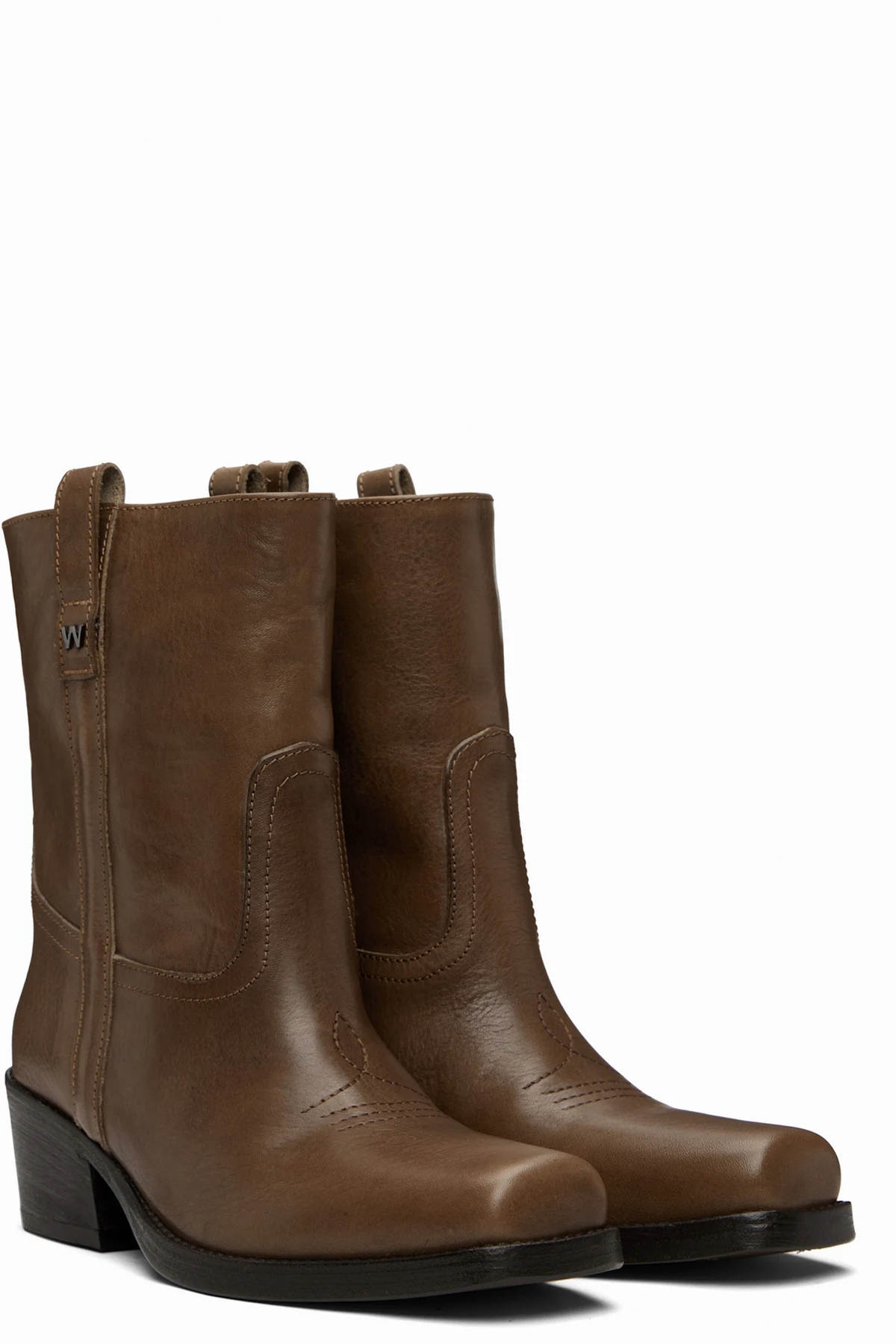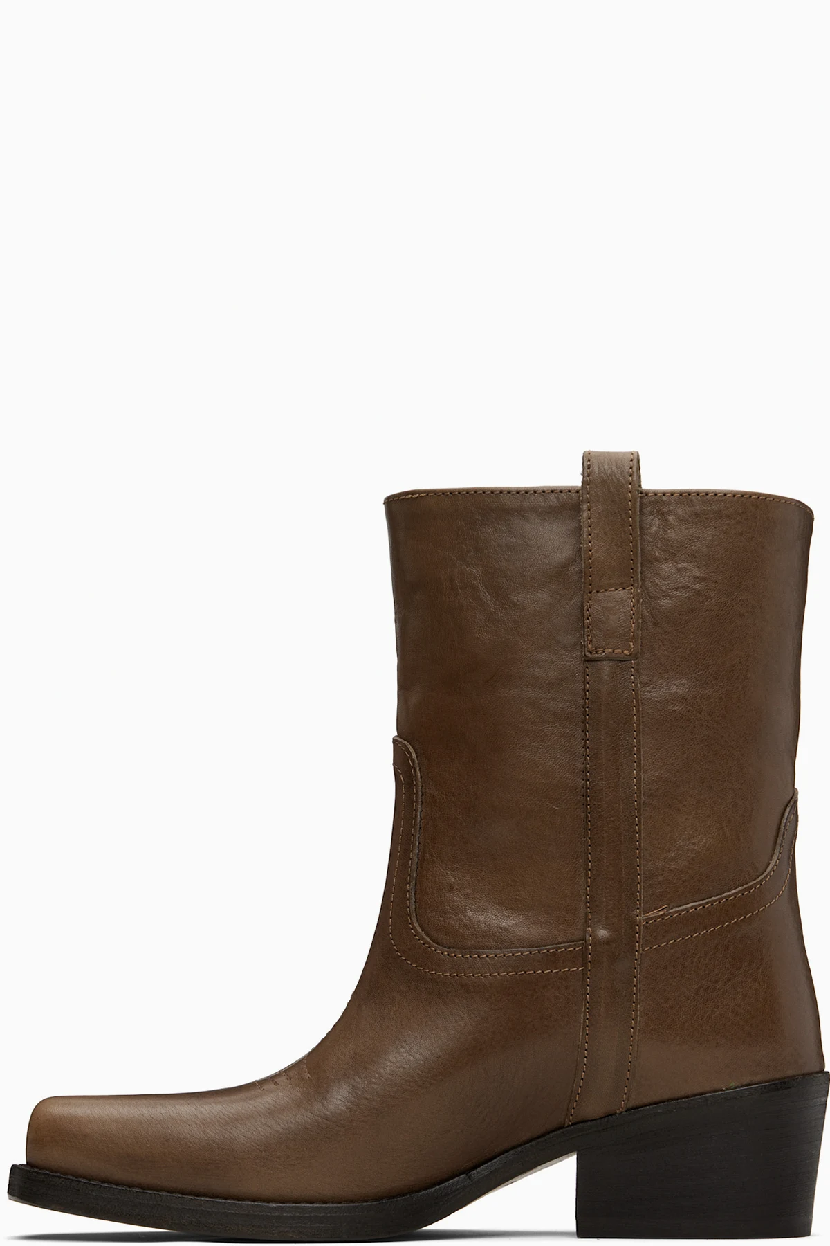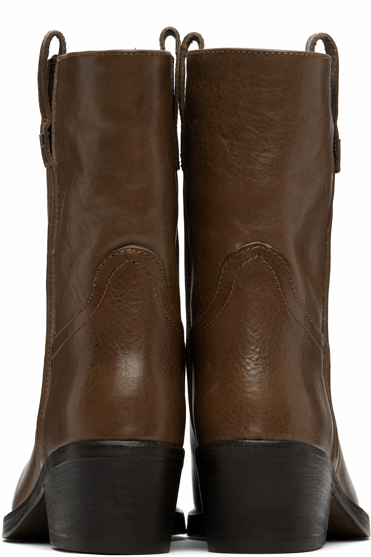 Ankle-high crinkled leather boots.