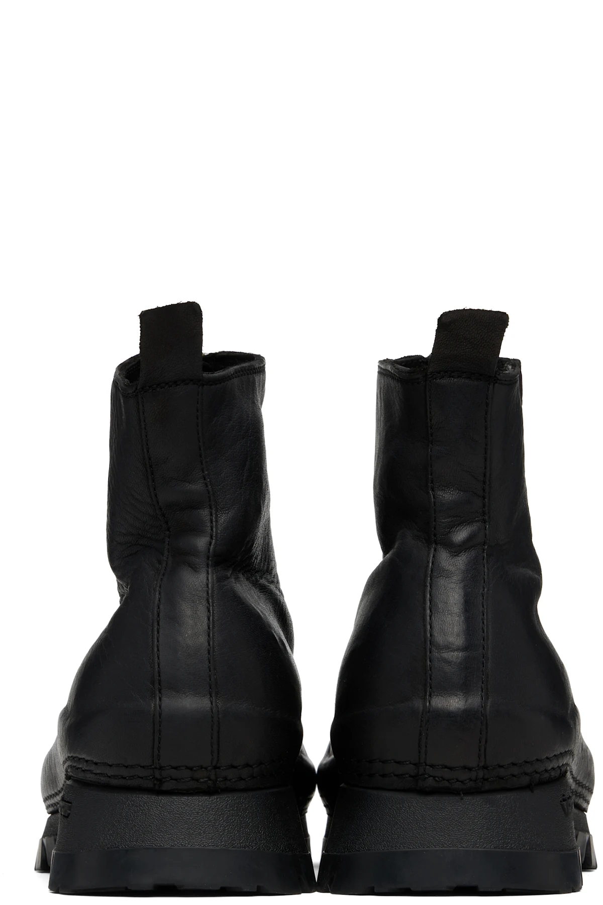 Ankle-high full-grain horse leather boots.