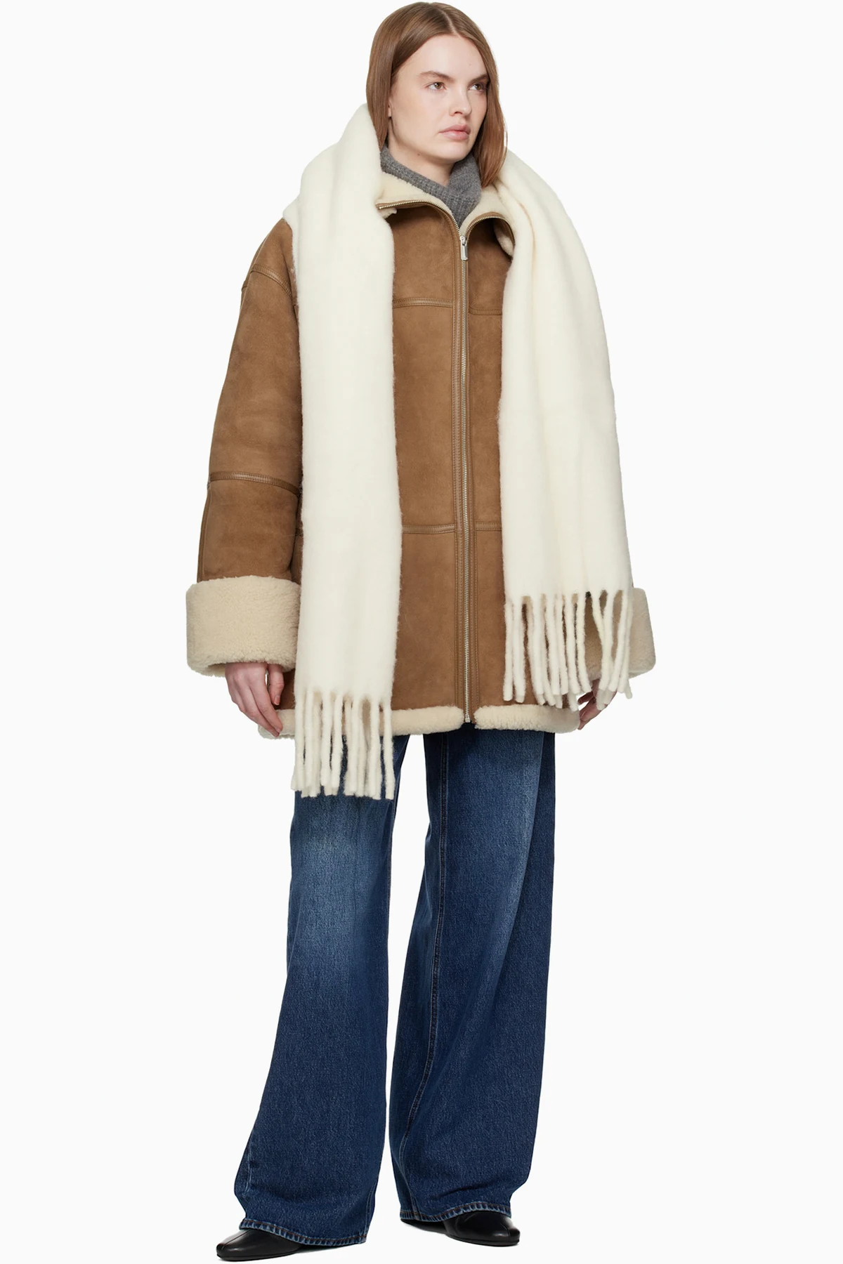· Fold-down shearling collar