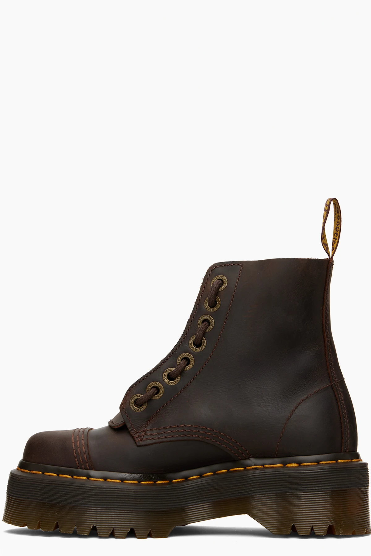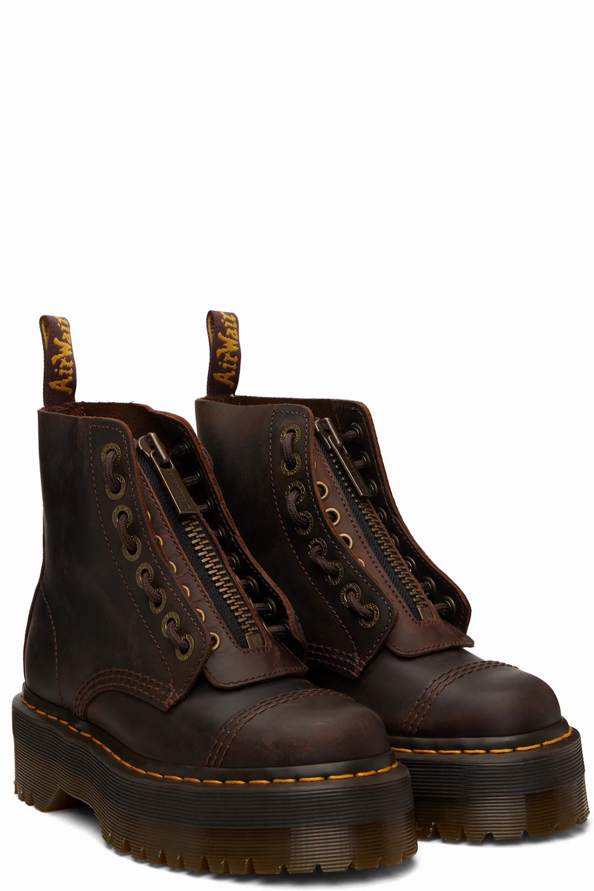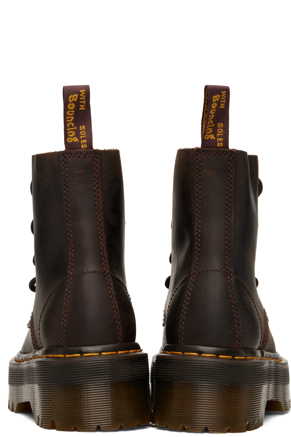 · Yellow topstitching at heat-sealed Goodyear welt