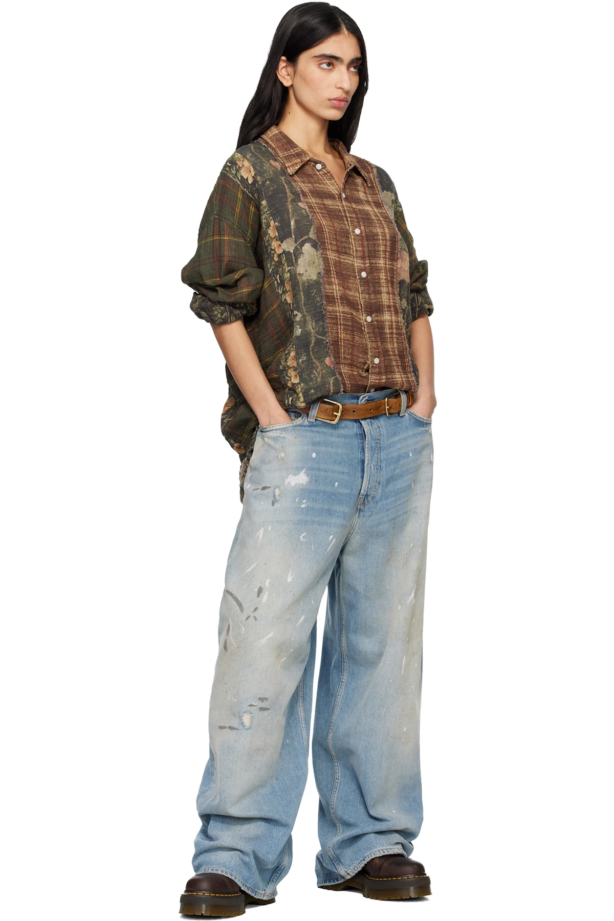 Ankle-high buffed leather boots.