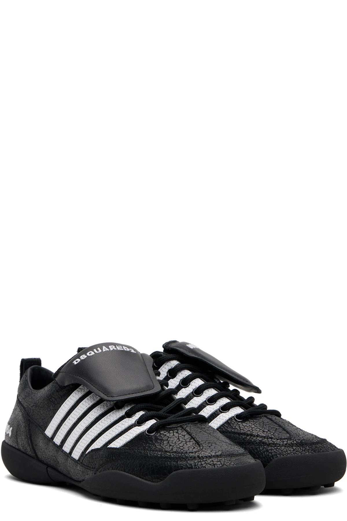Low-top crackled leather sneakers.